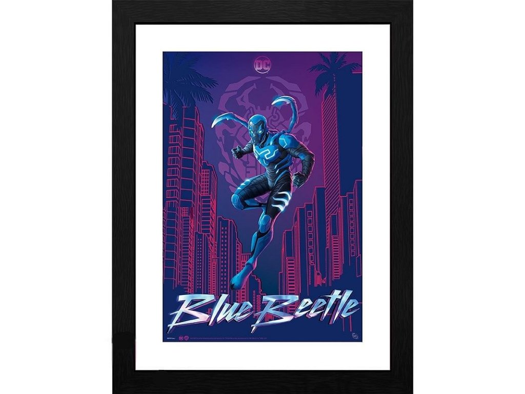 Obraz s hlavním hrdinou nového akčního filmu Blue Beetle podle komiksů od DC Comics pro správnou fanouškovskou domácnost i pracovnu. Šířka rámu je 2,5 cm.