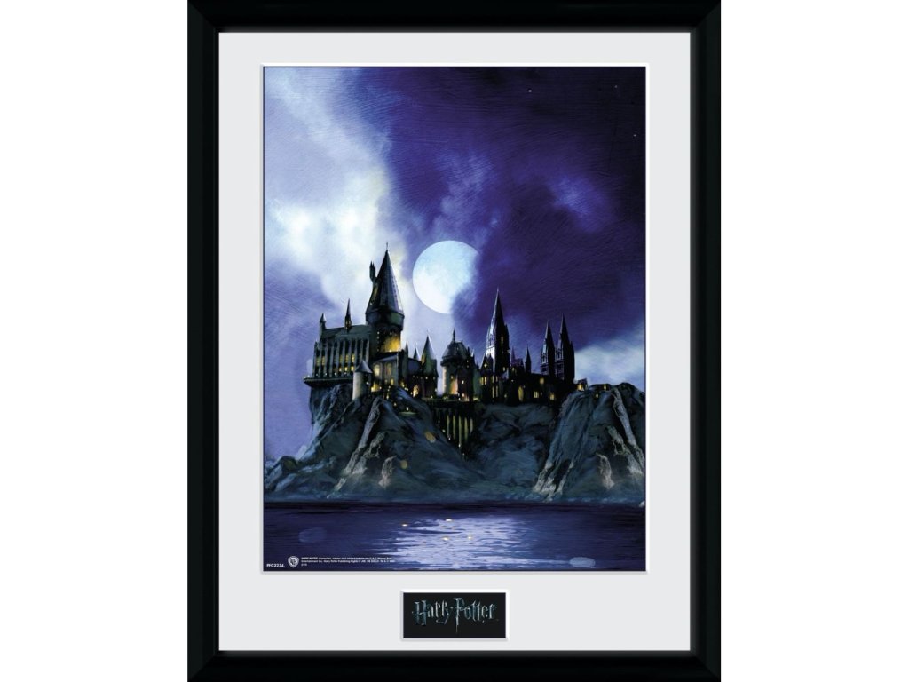 Zarámovaný obraz s Bradavickým hradem v úplňkové noci je kouzelnou dekorací na stěnu pro fanoušky Harryho Pottera.
