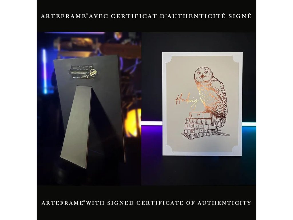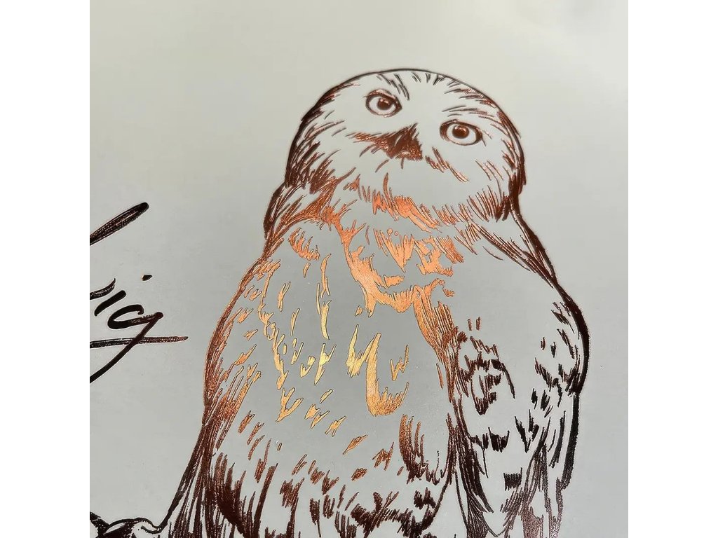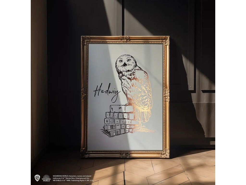 Přeměň svůj domov v kouzelnickou kolej v Bradavicích, díky nádhernému obrazu na tebe vždycky bude čekat Hedvika! Krásný dárek pro opravdové milovníky Harryho Pottera, magického světa J. K. Rowlingové. Obraz je dodáván v samonosném praktickém obalu Art&Frame, ve kterém si ho můžeš hned vystavit - bez potřeby rámu. Obal plakát ochrání a také poslouží jako dárková krabička. Součástí balení je certifikát pravosti. Obraz pochází z dílny francouzské společnosti Artéonn z Provence a je ukázkou tiskařské práce, ve které se setkává řemeslo s tradicí. Během tisku se mezi papír a kovovou desku vloží film s hliníkovými pigmenty. Ty pak tlak a teplo přenesou do prohlubní, čímž se zajistí jedinečná barva a textura.