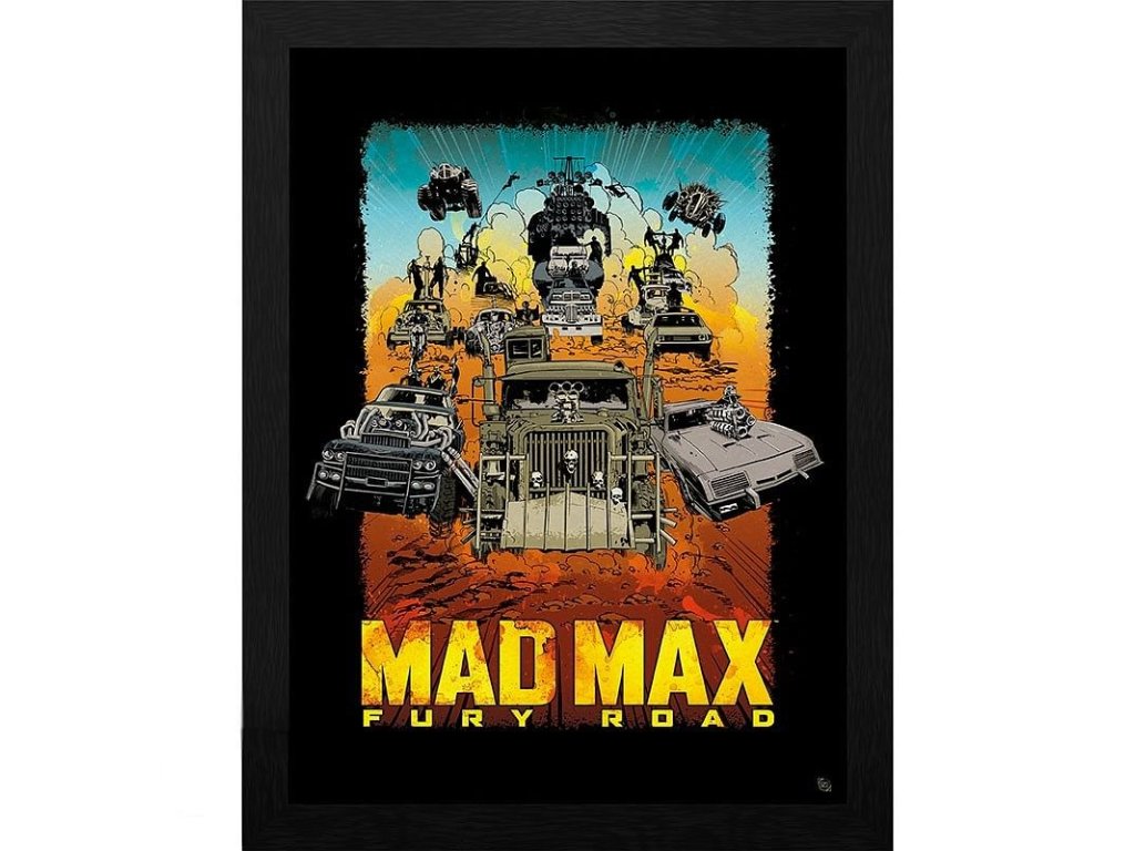 Zarámovaný obraz s vozidly šíleného postapo světa Mad Max udělá radost fanouškům a bude slušet vaší domácnosti i pracovně. Obraz Mad Max: Fury Road (Šílený Max: Zběsilá cesta) byl vyroben ke 100. výročí studia Warner Bros.