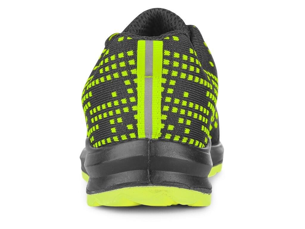 Textilní polobotka s reflexními doplňky. Materiál: svršek z odolného 1,8 - 2,0 mm polyesteru pratelného do 30 °C, přední část zesílena mikrovláknem, 3-vrstvá prodyšná textilní podšívka, PU-PU, podešev: PU-PU, protiskluzová, olejivzdorná, antistatická
