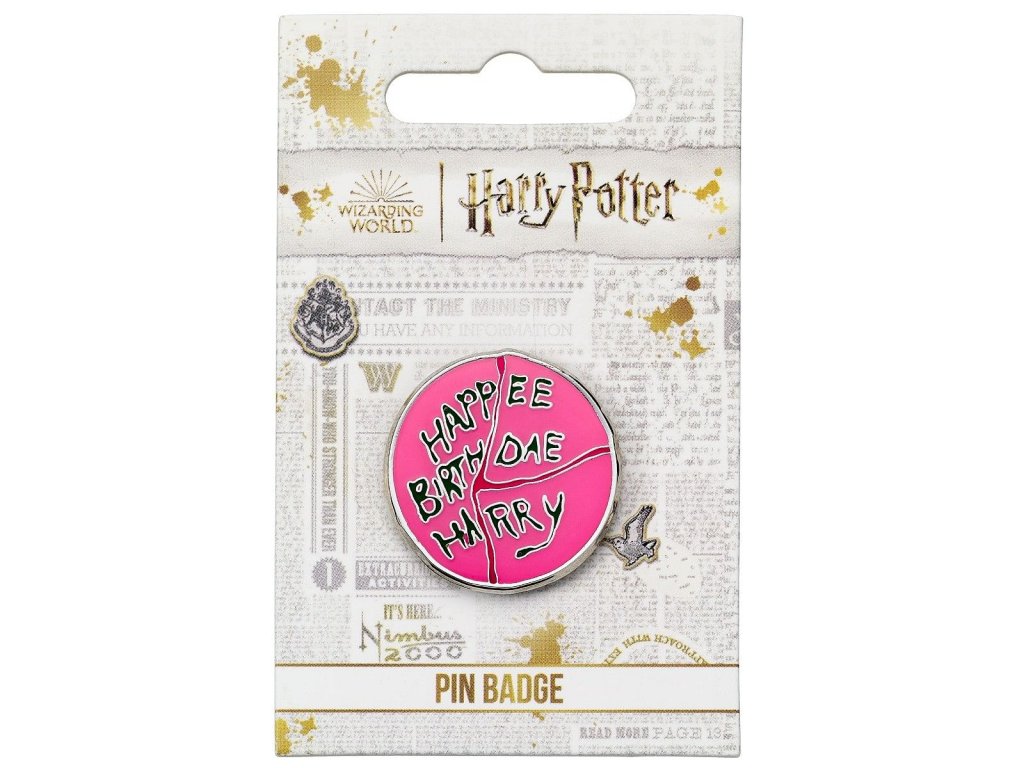 Připni si odznak v podobě růžového dortu, který Hagrid nadělil Harrymu k narozeninám - a samosebou nechybí ani originální přání Happee Birthdae Harry! Originální odznak pro kouzelníky z Bradavic a milovníky světa čar a kouzel Harryho Pottera. Udělej radost sobě nebo ostatním Potterheadům tímto okouzlujícím dárkem.