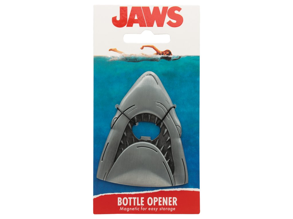 Co umí žraločí čelisti kromě trhání masa? No přece otevírat lahve! Tento oficiálně licencovaný otvírák na láhve Čelisti k 50. výročí kultovního filmu vypadá přesně tak, jak bys čekal – jako pořádně děsivá tlamka. Díky magnetu na zadní straně si ho můžeš připnout na lednici, takže tě nesežere, ale naopak ochotně pomůže otevřít pivo nebo limču. Rozměry: 87 × 70 mm. Když už musíš otevřít lahev, ať to má styl.