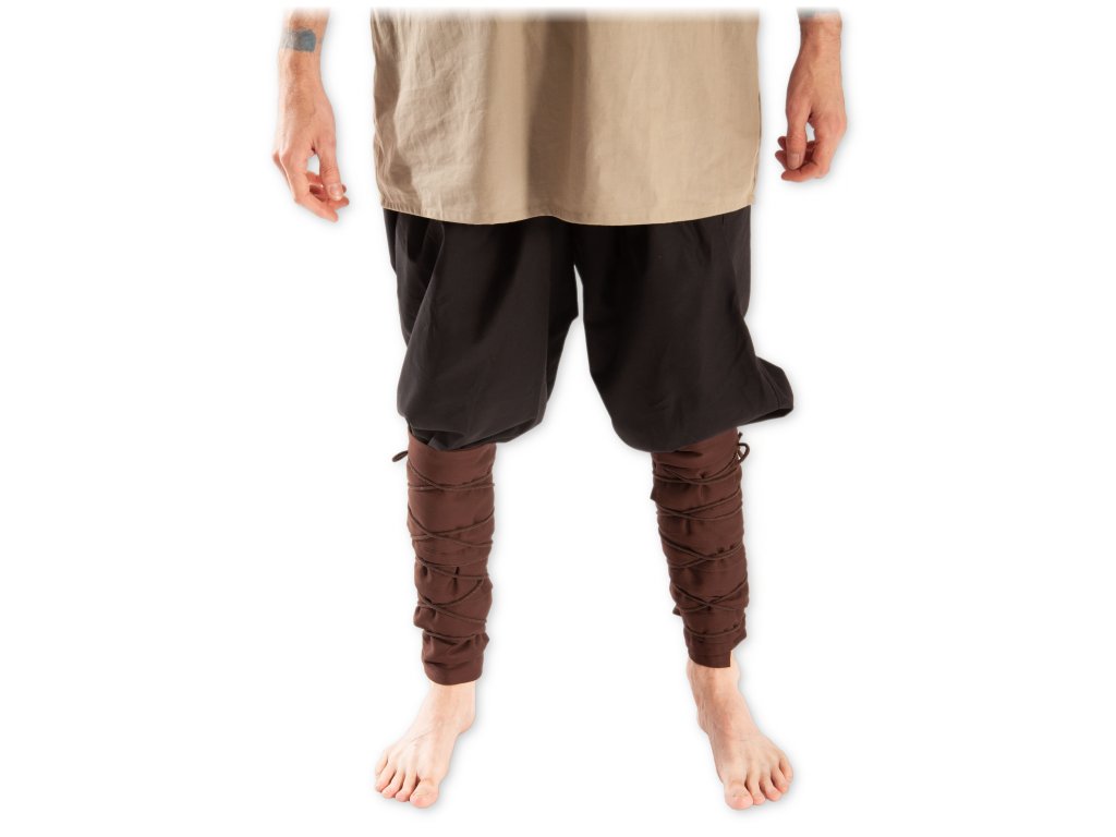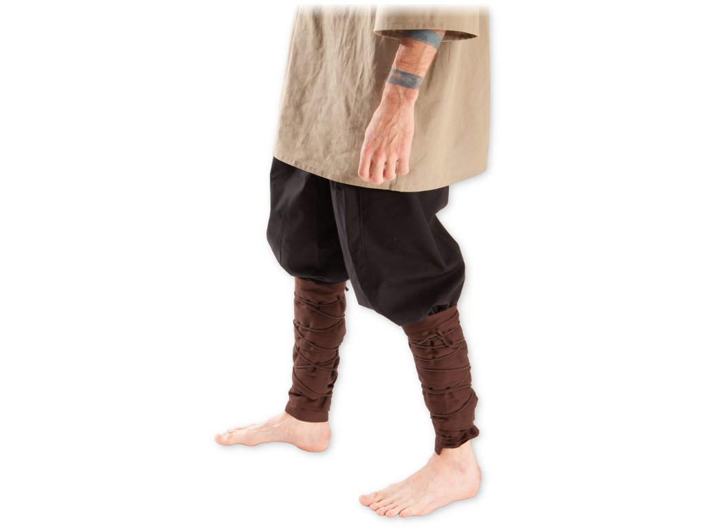 Ovinovačky neboli ovinky nohou tvoří dva dlouhé pásy obšitého plátna. Omotávají se kolem holeně (od kotníku nahoru s přesahem přes nohavice). Ve středověku byly ovinky častou součástí oděvu u mužů i žen, která zpevňovala a částečně i chránila lýtko a holeň při pohybu v terénu či před nepřízní počasí. Uvedená cena je za pár pásů k ovinutí. Ovinovačky jsou vyrobené z tenkého bavlněného plátna pro příjemné nošení. Na jednom konci je pás opatřen tunýlkem s cca 3 m dlouhou šňůrkou k ovázání ovinovaček. Pokud nechcete šňůrky používat, lze je z tunýlku vyjmout. Více o použitém materiálu se dočtete zde: popis materiálů.