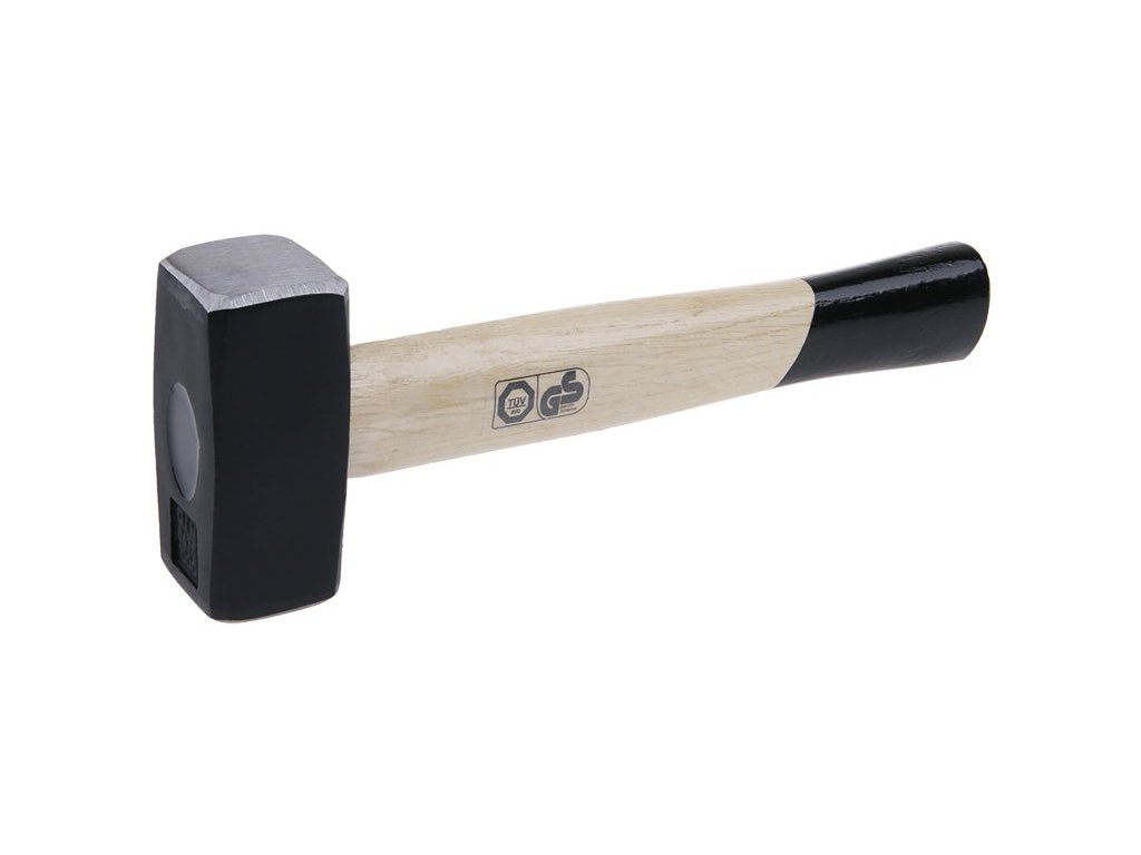 Dřevěná palice 1000g s lakovanou ergonomicky tvarovanou násadou. Hlavice kovaná oboustranná se zkosenými hranami. Kruhový klín.
