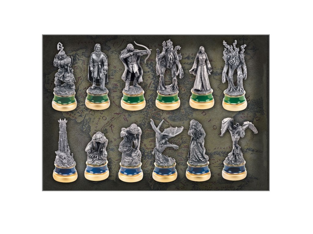 Zkompletujte si svou sbírku s těmito sběratelskými šachovými kousky inspirovanými filmem Pán prstenů - Dvě věže. Čeká na vás balení 12 miniaturních figur (dva sety po šesti) zobrazujících jedinečné postavy z druhého dílu filmové trilogie Pán prstenů. Jednotlivé figurky jsou svým průměrem základny uzpůsobeny pro standardní šachovnici. V sadě naleznete tyto postavy: Gimli Théoden Stromovous (dvě figury v různých provedeních) Legolas Eowyn čarodějnický král Angmaru - vůdce Nazgûlů (dvě figury v různých provedeních) Glum / Sméagol (dvě figury v různých provedeních) Gríma Červivec Věž Barad-dûr