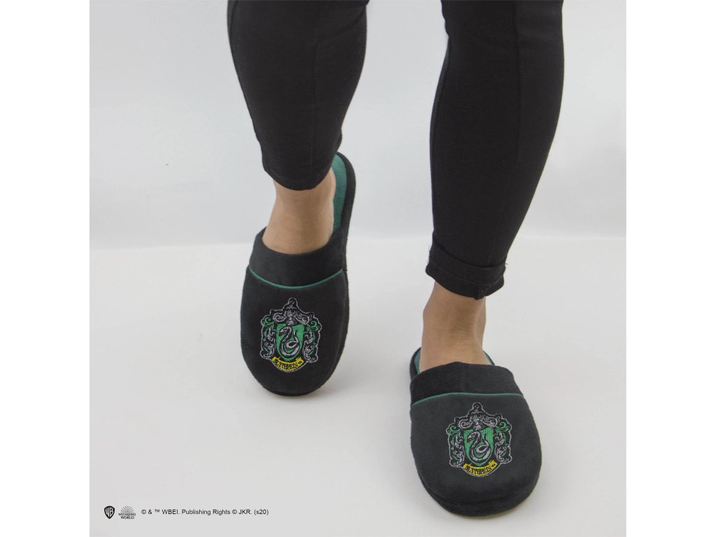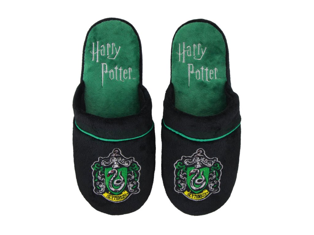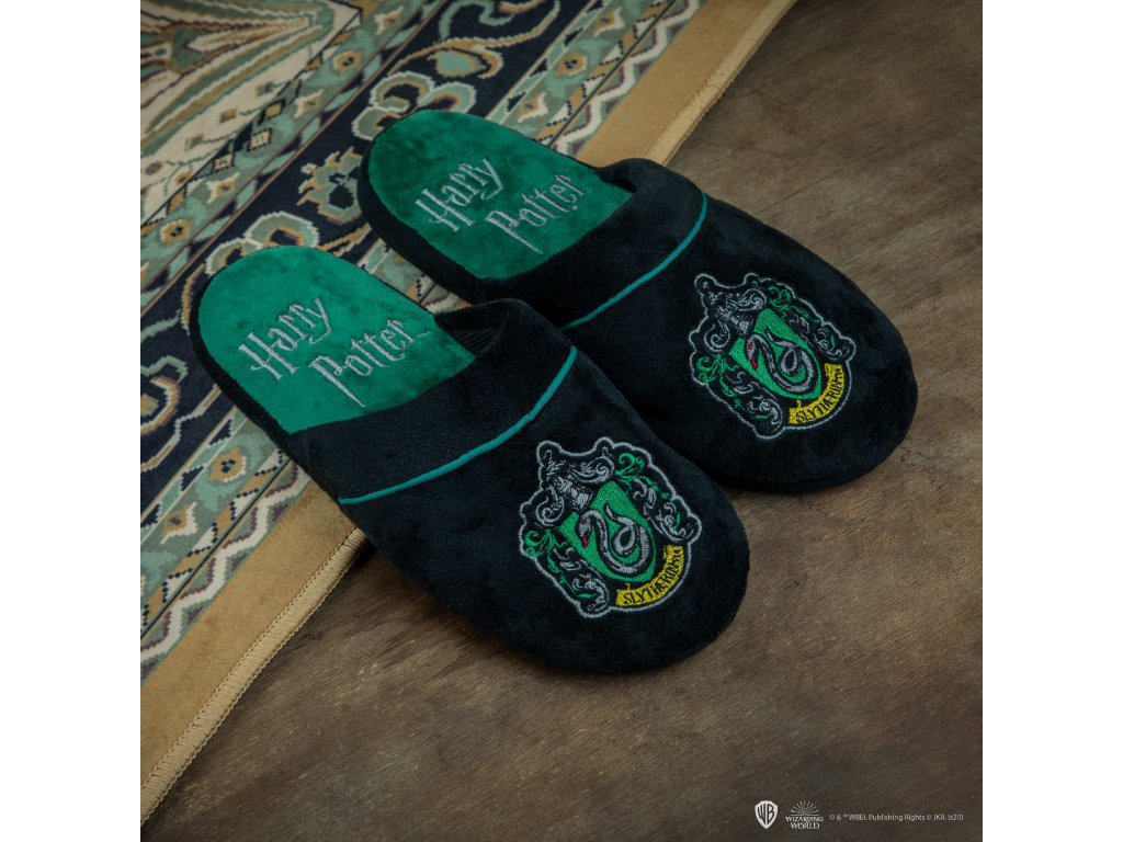 Domácí papuče v barvách a se znakem zmijozelské koleje v Bradavicích podle příběhů Harryho Pottera. Pro dámy s velikostí nohy 36-39 doporučujeme velikost S/M a pro pány velikost M/L.