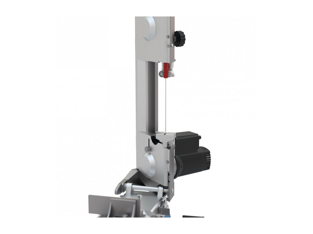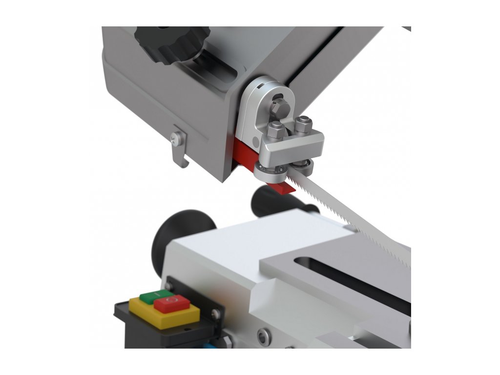 Stolní pásová pila s elektrickým motorem o výkon 550 W, max. řezný výkon 115 mm, úhlové řezy 90° - 45°.