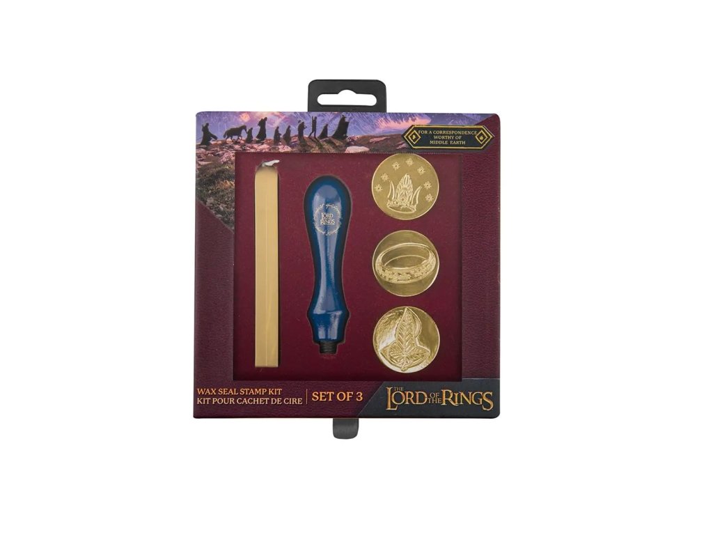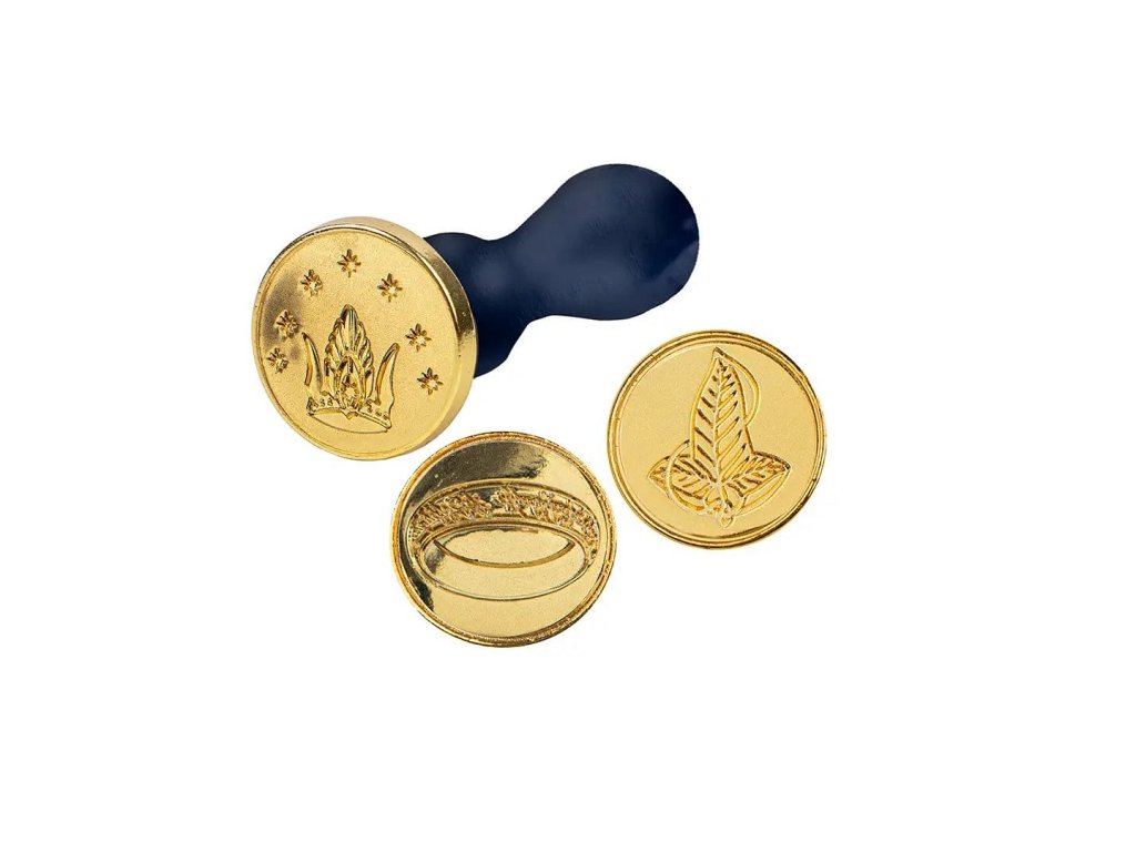 S pečetní sadou pro fanoušky Pána prstenů budeš posílat dopisy a přáníčka s nádechem Středozemě. Součástí sady jsou 1 pečetidlo, 3 razidla s různými symboly (Prsten moci, elfí lístek a koruna krále Elessara) a 1 ks pečetícího vosku.