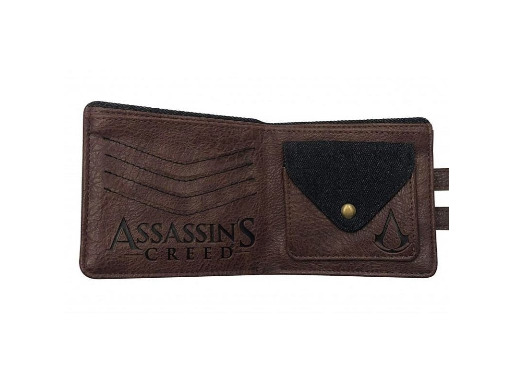 Svěřte své peníze pod ochranu asasínů z populární herní řady Assassin s Creed! Tato pěkná peněženka má unikátní zavírání pomocí přezek a kovové spony s logem oblíbených videoher. Peněženka má dostatek prostoru pro bankovky, platební a ID karty, doklady, jízdenky či vstupenky, stejně jako kapsu na drobné mince.