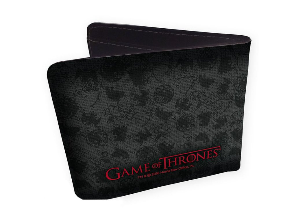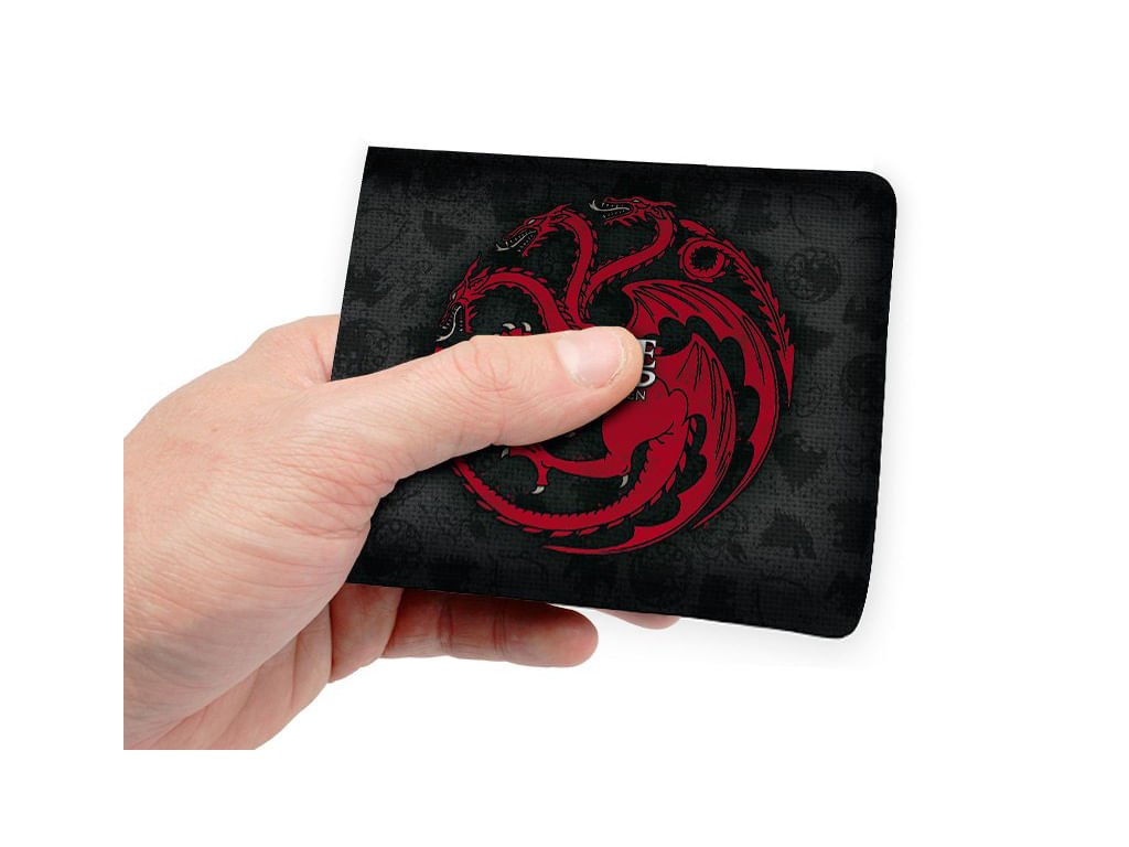 Stylová peněženka se symbolem rodu Targaryenů z populární knižní a seriálové série Hra o trůny. Peněženka obsahuje zapínací kapsu na drobné mince, velkou přihrádku na bankovky a sloty pro doklady či platební karty.