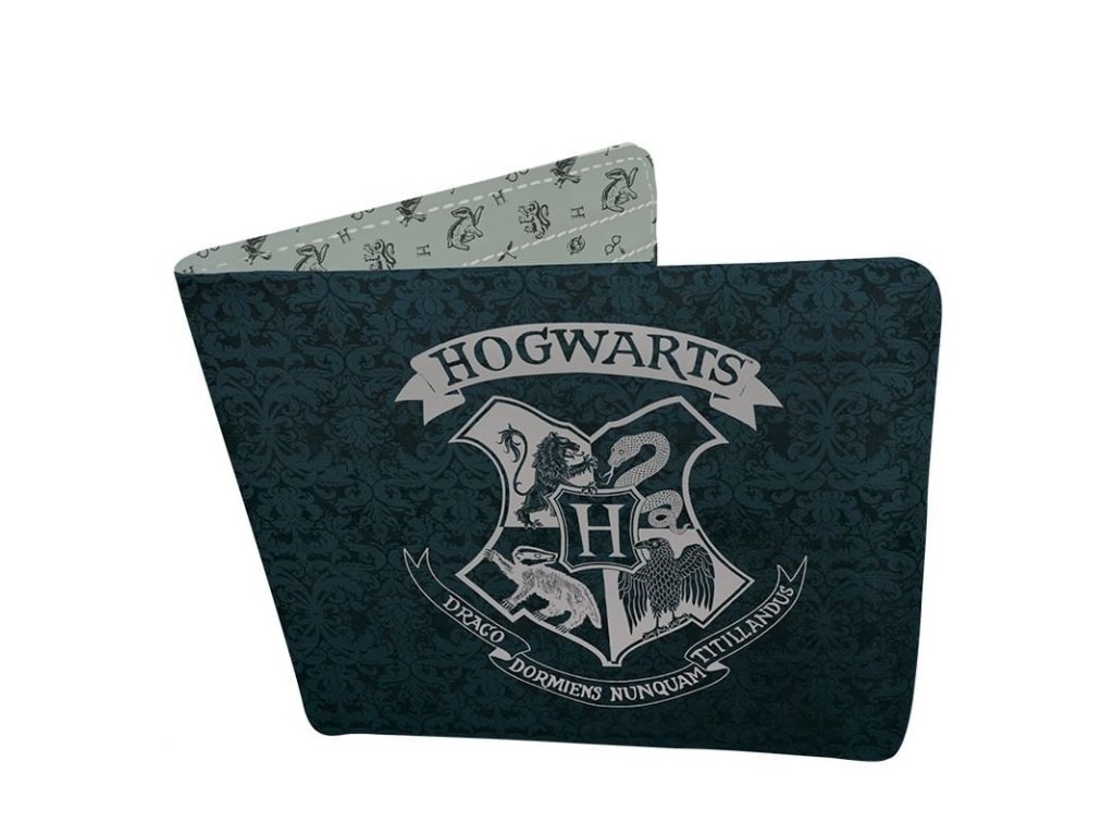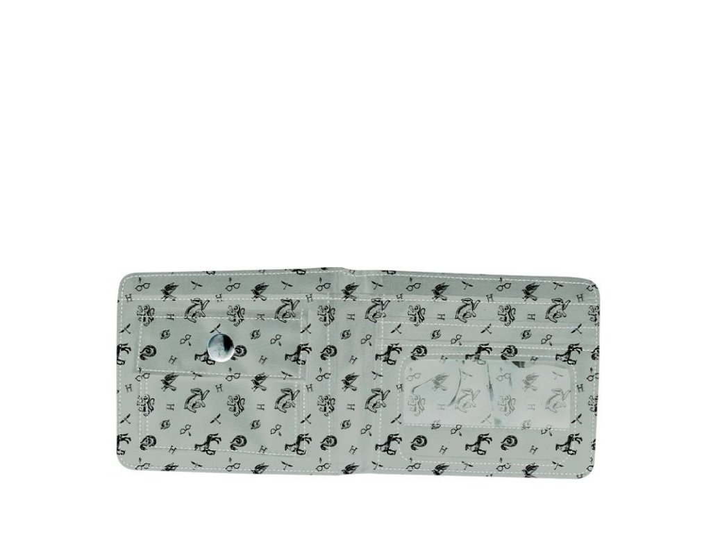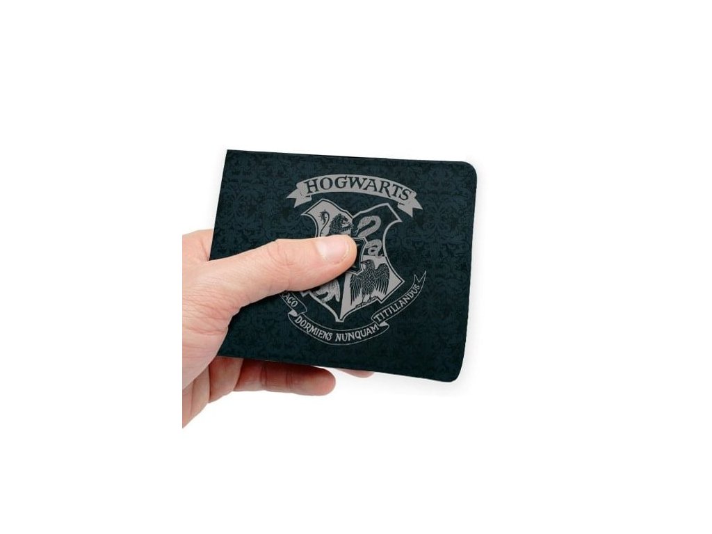 V peněžence ozdobené znakem Bradavic, školy čar a kouzel z Harry Pottera, na přední straně a s červenou pečetí na zadní, budou vaše galeony a srpce, ale i další peníze, platební karty či vstupenky v bezpečí.