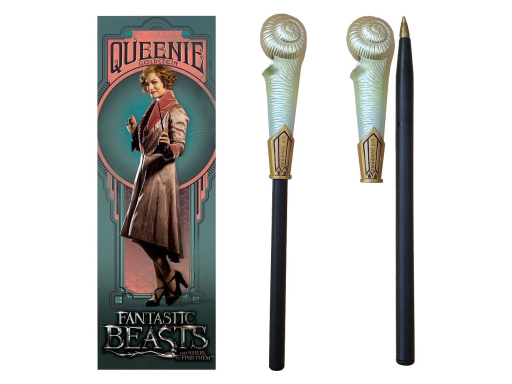Stylová tužka v podobě kouzelnické hůlky Queenie Goldstein a knižní záložka s motivem této hrdinky z filmu Fantastická zvířata a kde je najít.