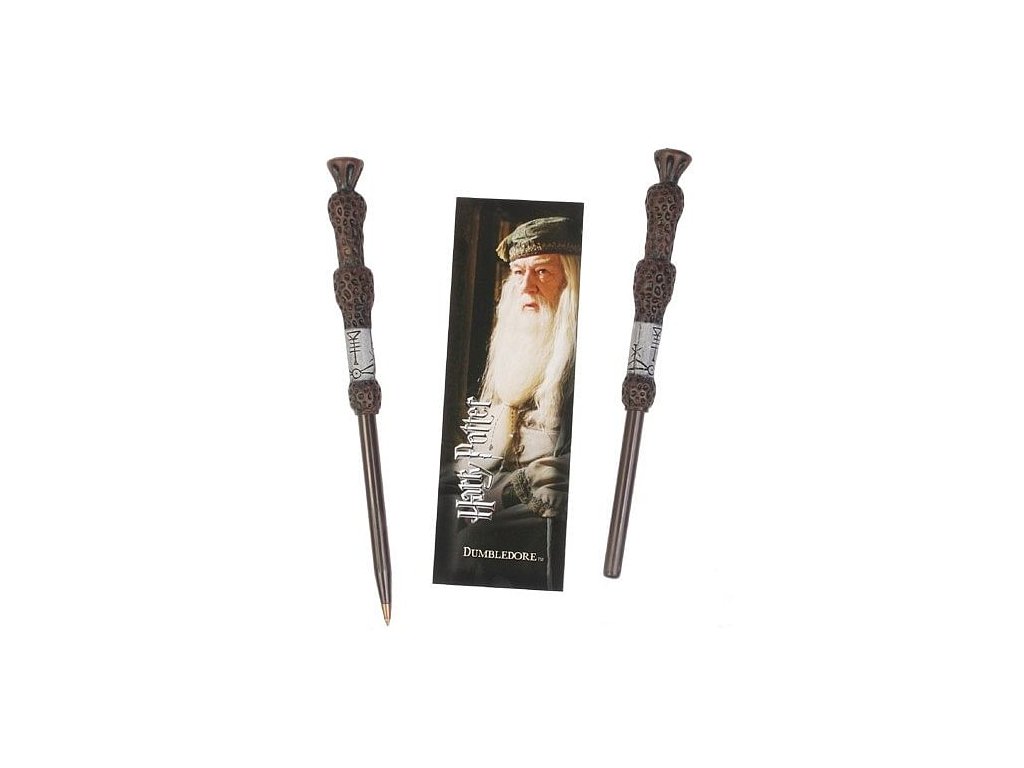 Tužka v podobě kouzelnické hůky Albuse Brumbála a knižní záložka s motivem tohoto hrdiny z příběhů o Harry Potterovi. Oficiálně licencovaný produkt.