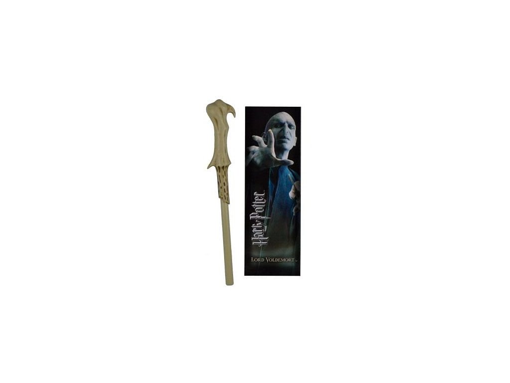 Tužka v podobě kouzelnické hůky Lorda Voldemorta a knižní záložka s motivem tohoto zloducha z příběhů o Harry Potterovi. Oficiálně licencovaný produkt.