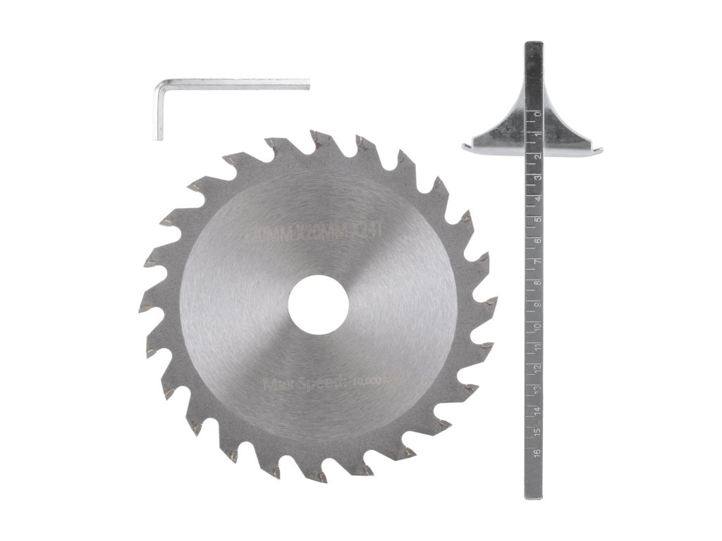 Součástí balení: kotouč 120mm, paralelní doraz a montážní klíč. Bezuhlíkový motor. Pozvolný rozběh. Funkce rychlého zastavení pilového kotouče. Baterie: 20V 4Ah Li-ion Průměr kotouče: 120x1,2x20mm Otáčky: 6500/min Hmotnost: 2,4kg
