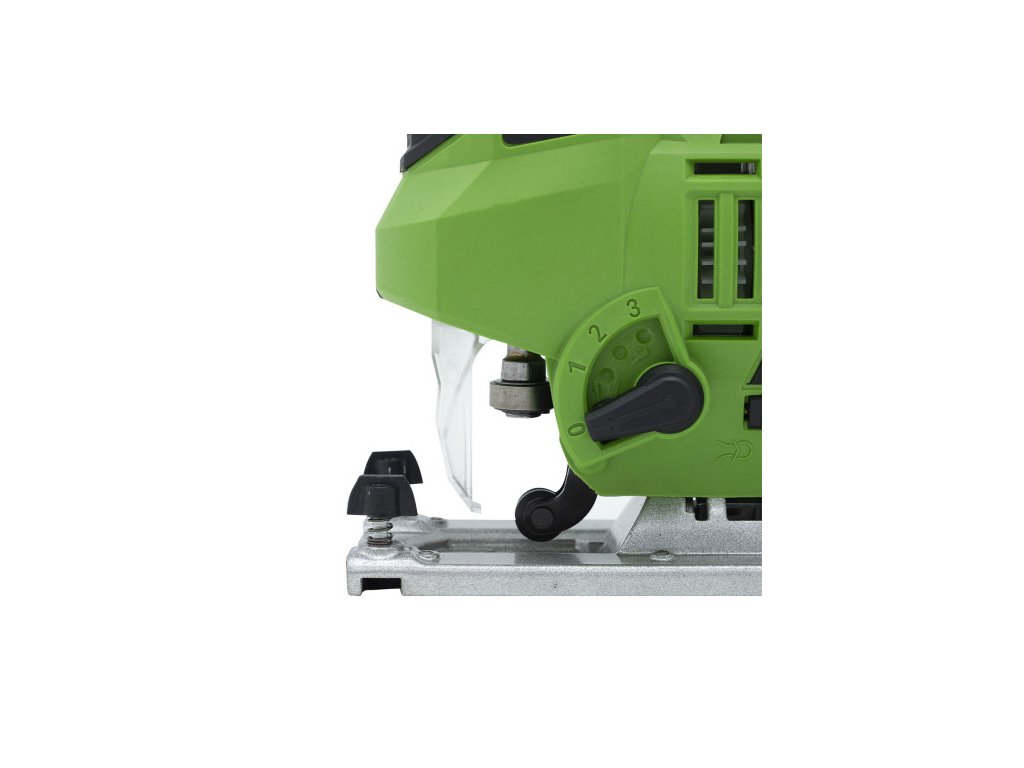 Součástí balení: imbusový klíč, pilový list na dřevo. Nastavení úhlu řezání, rychloupínání T-LOC Příkon (W) 750  Počet zdvihů (min-1) 0-3000 Max. hloubka řezu dřevo/ocel/hliník (mm) 110/10/15 Hmotnost (kg) 2