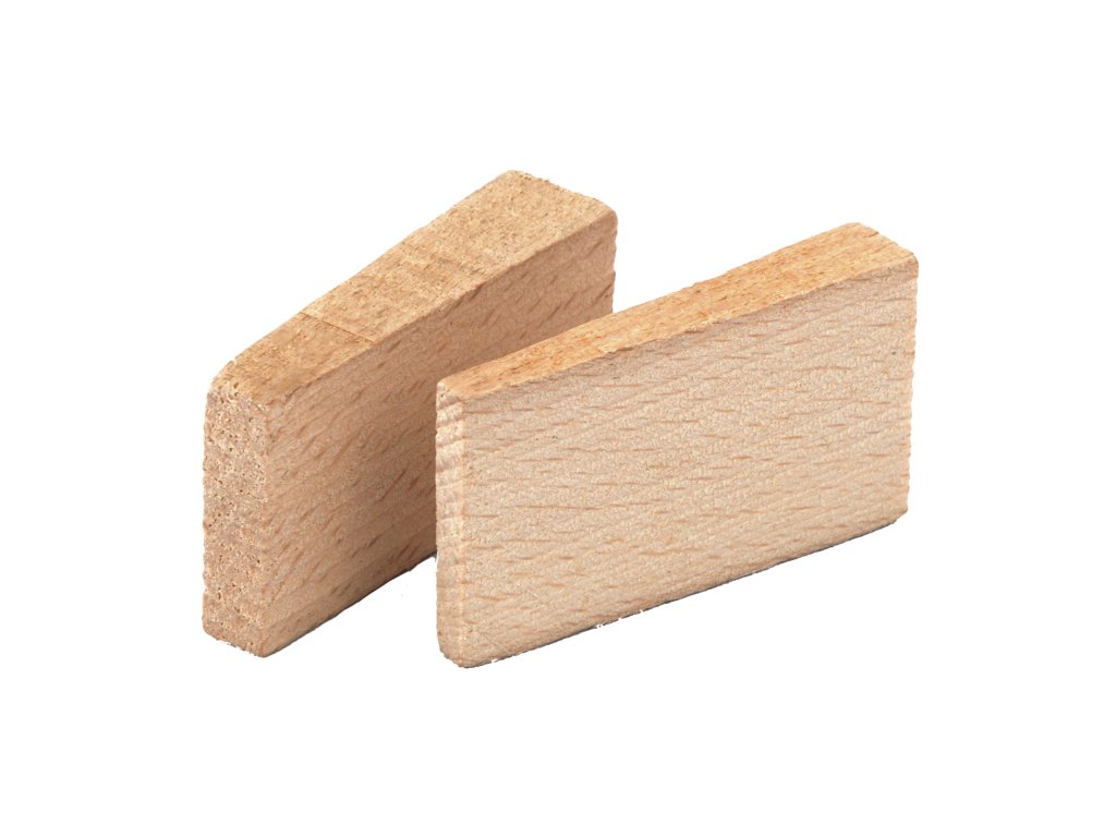 Dřevěné montážní klíny jsou vyrobeny z tvrdého dřeva a jsou vždy řezány ve směru vláken materiálu. Používají se jako dorazové klíny na parkety a k fixaci utahovacích mezer. Sada obsahuje 10 ks o rozměrech 57x34x5/10 mm a 10 ks o rozměrech 57x34x10/15 mm.