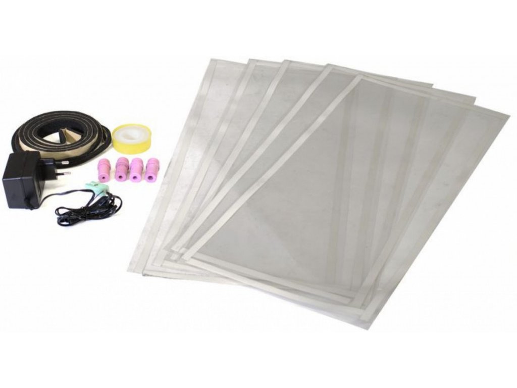 Příslušenství: 4dílná sada keramických trysek (průměr: 4-5-6-7 mm), ochranné fólie (5), 12 V síťový adaptér, těsnicí a teflonová páska.