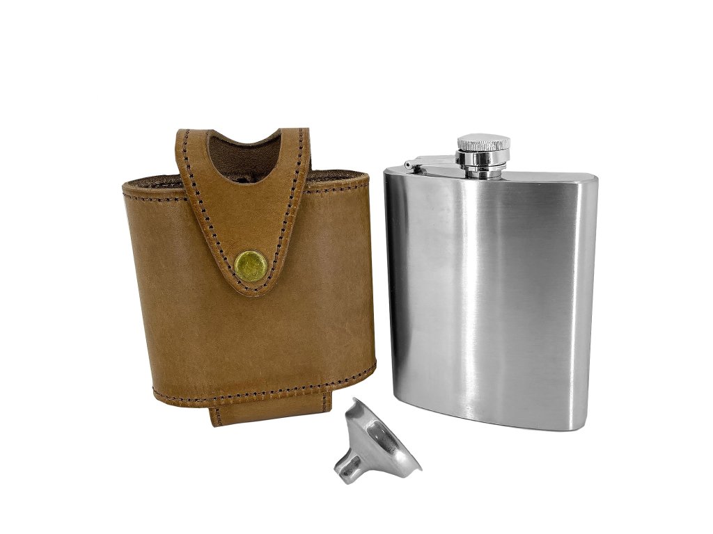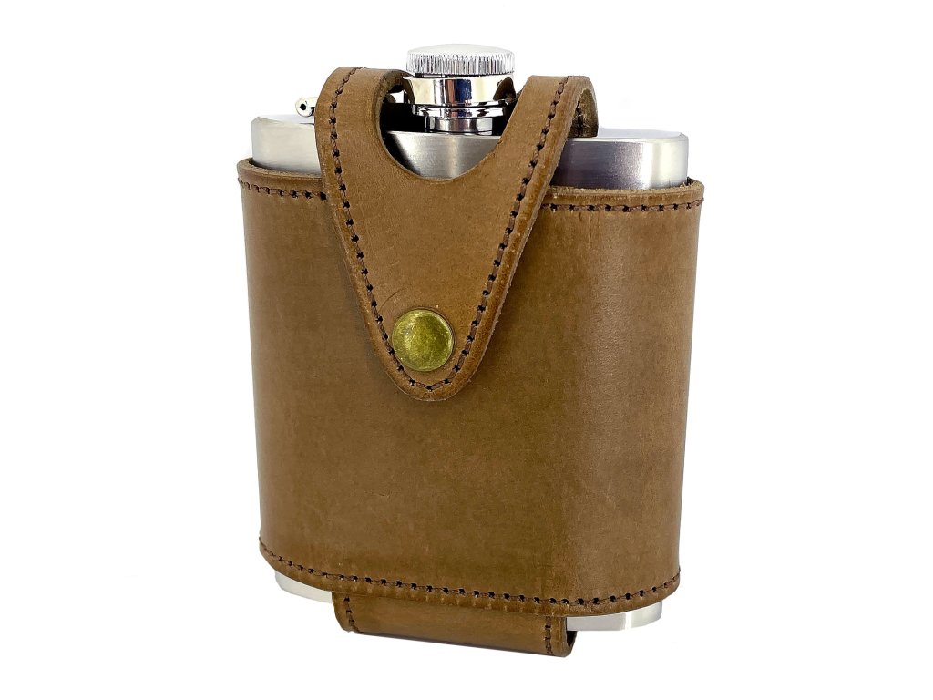 Stylová placatka v koženém pouzdru, věrný společník na dlouhé večery a neocenitelný pomocník na daleké cesty, který bude vždy po ruce. Záleží jen na vás, jakým nápojem ji naplníte. Jisté však je, že se s ní můžete blýsknout na LARPU, u táborového ohně i na rodinné oslavě. Perfektně se hodí jako originální dárek. Kvalitní placatka z nerezu bezpečně odolá působení živlů a tak se s ní nemusíte bát vyrazit na dobrodružnou cestu tam a zase zpátky. Obal jsme pro vás vytvořili v naší dílně z hovězí kůže prvotřídní kvality. V zadní části obalu je poutko, díky kterému můžete pouzdro navléknout na opasek a mít tak placatku hned po ruce. Je libo přidat na kožené pouzdro nějaké věnování? Na vaše přání vám jej můžeme pomocí gravírování vykouzlit. Placatka na opasku není váš styl? Vyzkoušejte stylovou placatku v kůži, která vám perfektně padne do ruky a bude bezpečně cestovat i ve vašem batohu. Mrkněte se i na variantu placatky v koženém obalu s luxusním gravírováním.