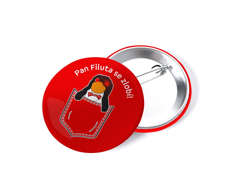Pan Filuta se zlobí! Originální placka s panem Filutou potěší všechny fanoušky Červeného trpaslíka i zabijáckých tučňáků se svítícíma očima. Skvěle se bude vyjímat na batohu, žebradle nebo třeba bundě či kabátu. Velikost placky je cca 5,8 cm a má krásnou, sytě rudou barvu.