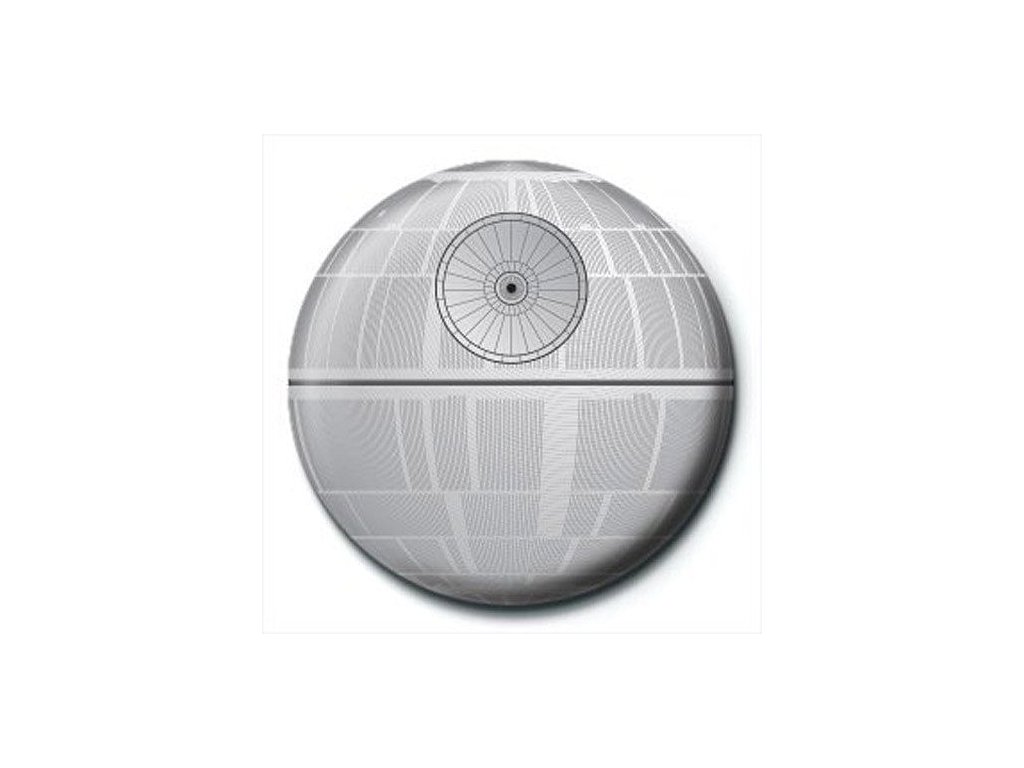Placka vyvedená v grafice vesmírné stanice Death Star (Hvězda smrti) z populární sci-fi ságy Star Wars - Hvězdné války.