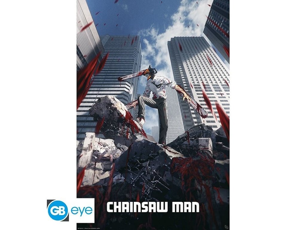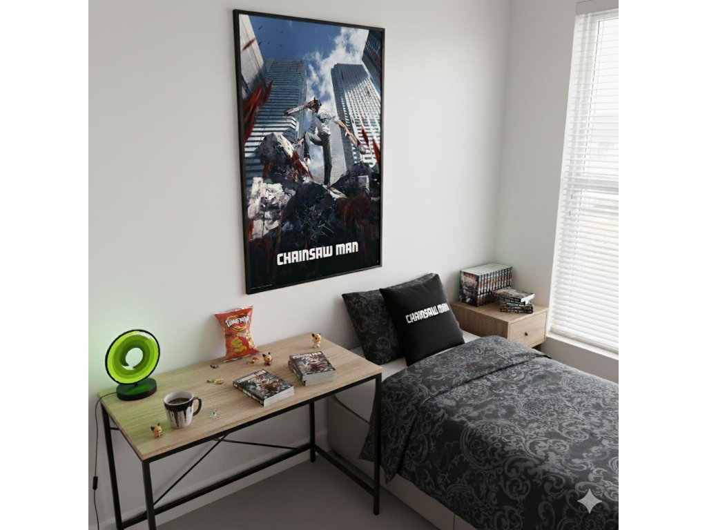 Plakát s grafikou hlavního hrdiny japonské mangy Chainsaw Man bude ozdobou domácnosti i pracovny každého fanouška.