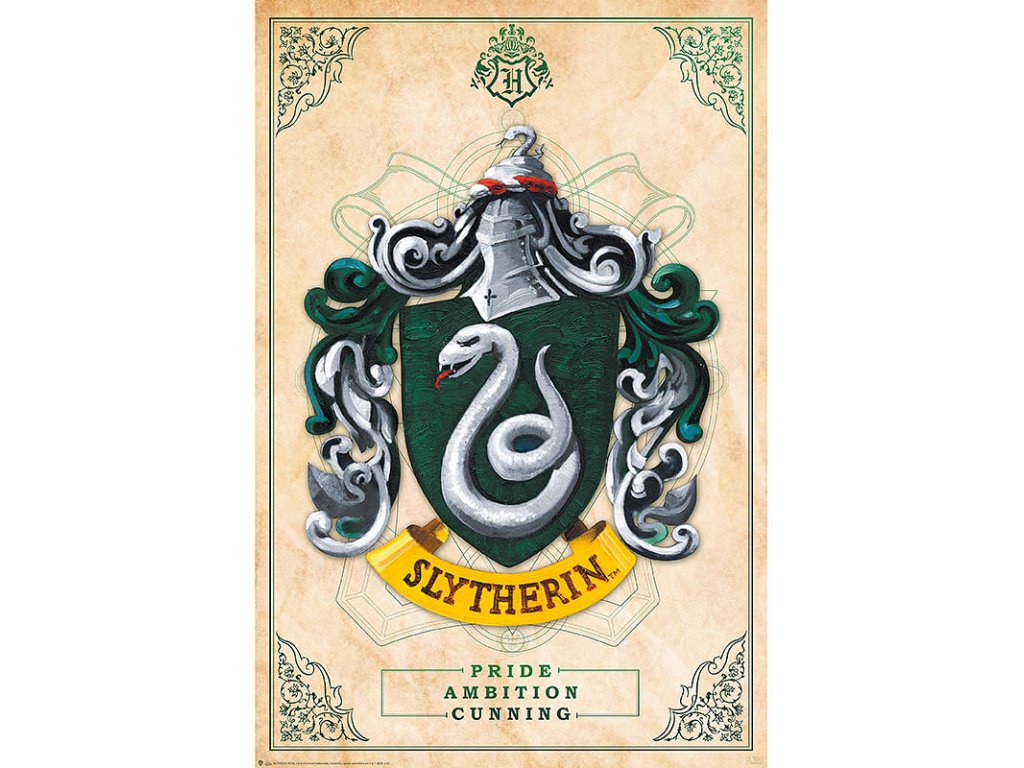 Plakát s hadím erbem a patronem koleje Zmijozel na bradavické škole čar a kouzel potěší fanoušky knih a filmů o Harry Potterovi! Pěkný dárek i doplněk domácnosti či kanceláře.