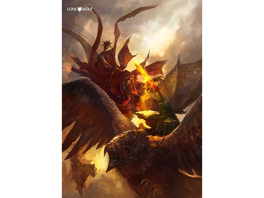 Plakát k pátému dílu gamebooku Lone Wolf - Stín na písku. Formát plakátu A3. Materiál lesklá křída. Jsi Lone Wolf - Osamělý vlk, poslední z rytířů řádu Kai. Tvá diplomatická cesta do pouštní říše Vassagonie se záhy změní v boj o holý život. Ve Stínu na písku budeš pronásledován zlověstným nepřítelem, který je odhodlán tě zabít za každou cenu.