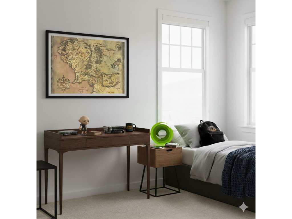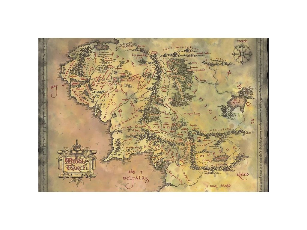 Krásný plakát s mapou Středozemě udělá radost fanouškům fantasy ságy Pán prstenů od J. R. R. Tolkiena.