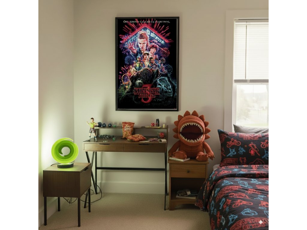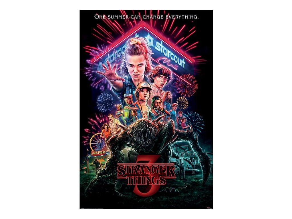 Pěkný plakát pro milovníky příběhů hororového seriálu Stranger Things s grafikou hrdinů této série.