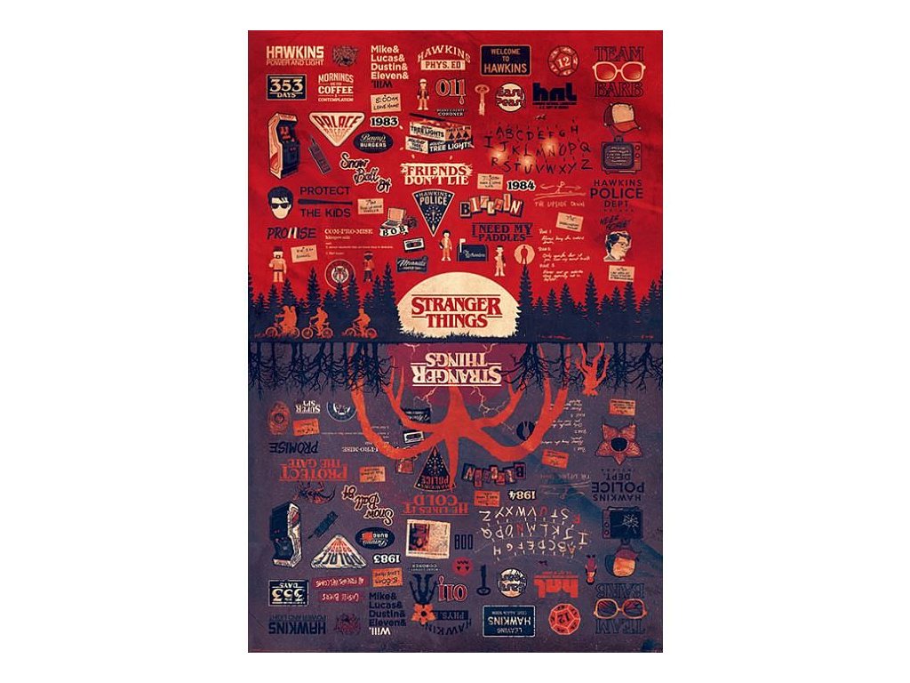Tento hezký plakát s grafikou oblíbeného hororového seriálu Stranger Things bude pěkným doplňkem domácnosti, herny i pracovny každého fanouška.