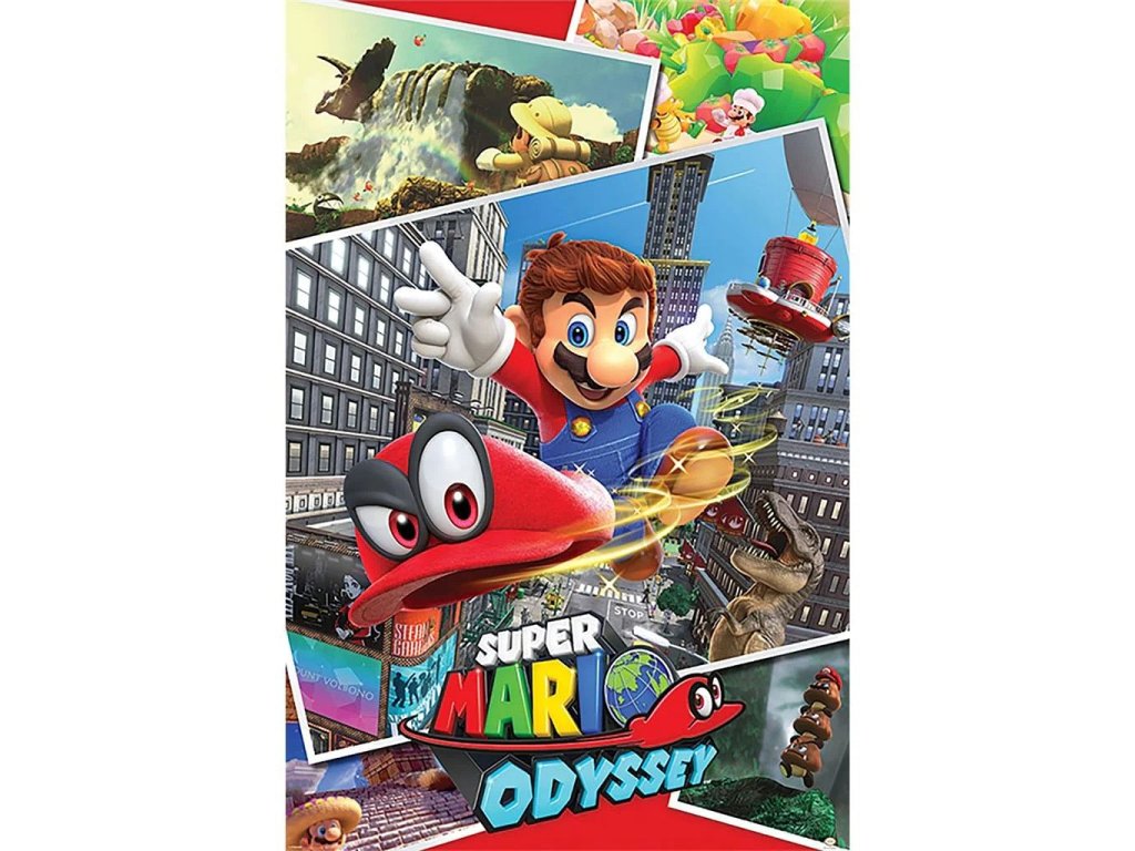 Plakát s grafikou videohry Super Mario Odyssey od Nintenda udělá radost malým i velkým hráčům a fanouškům.