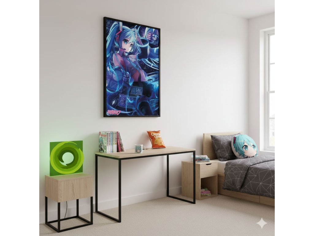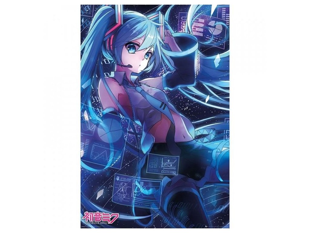 Plakát s grafikou digitální super hvězdy a zpěvačky Hatsune Miku z oblíbeného japonského vocaloidu bude ozdobou vaší domácnosti i pracovny.