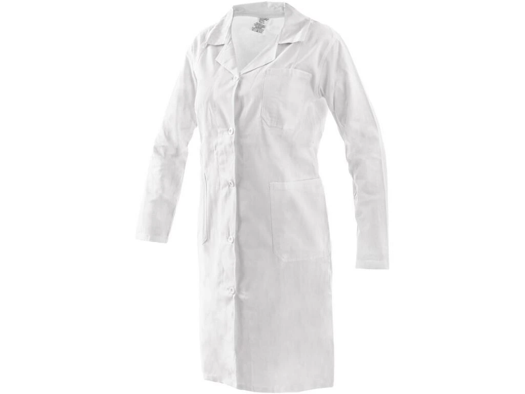 Dámský plášť s dlouhým rukávem, 3 přední kapsy, vzadu pásek s knoflíkem na stáhnutí. Doporučené použití: soukromé ordinace, kliniky a velká zdravotnická zařízení, záchranné a zdravotní dopravní služby, lázeňská zařízení, ústavy sociální péče, lékárny, školy se zdravotnickým a gastro zaměřením.