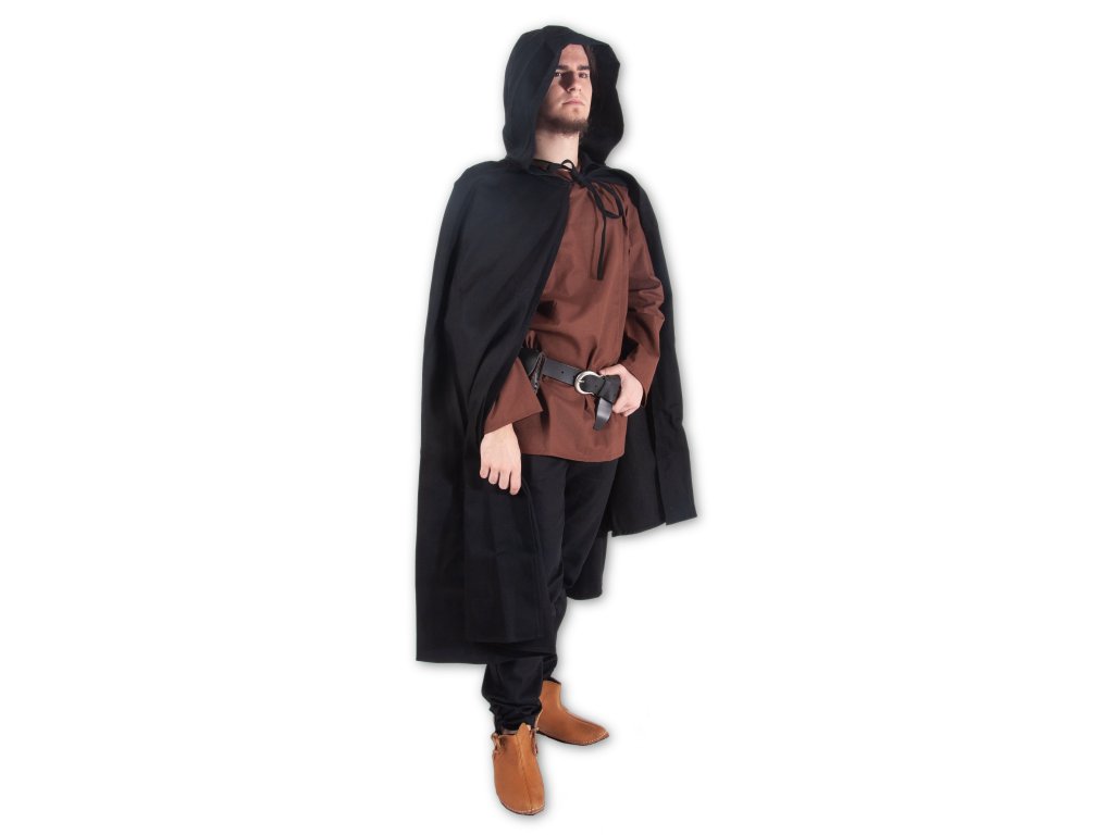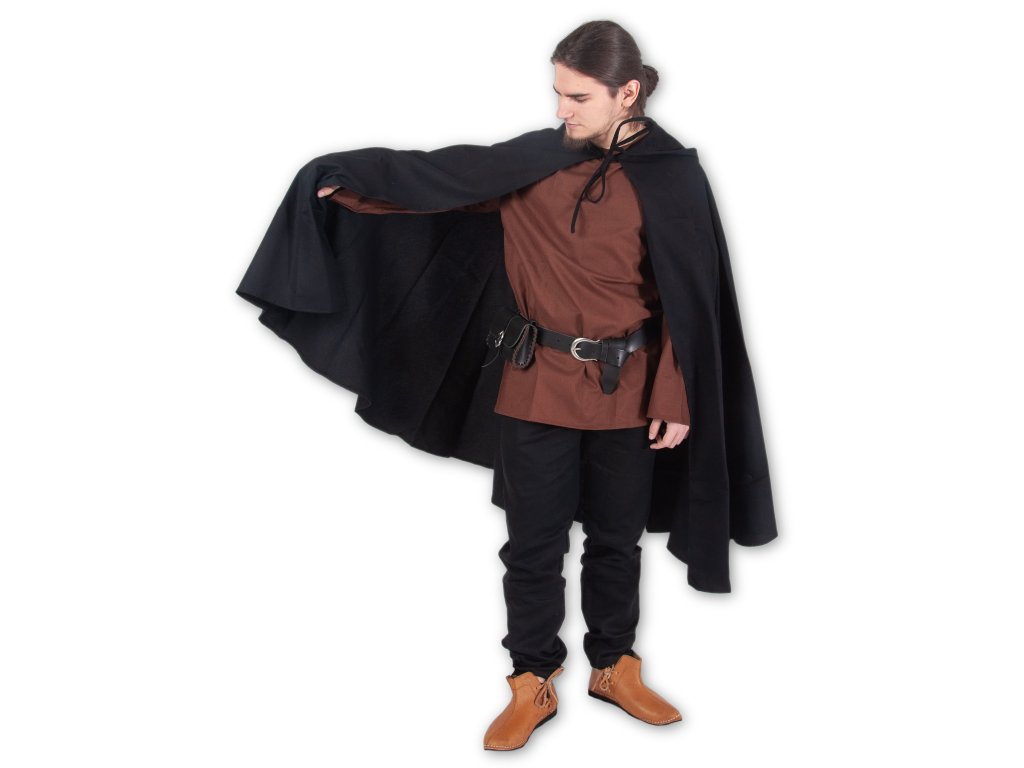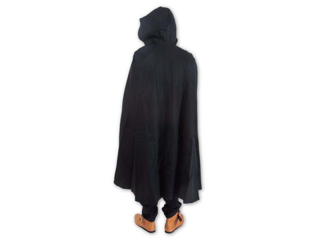 Podařilo se vám setřást bandu zpropadených trollů a teď utíkáte zpět ke své družině. Ta už vás ostatně očekává - bez hraničáře nenaleznou cestu do vesnice tak snadno. Díky svého černého pláště s kapucí se po lese pohybujete neslyšně, bez povšimnutí a široká kapuce halí vaši tvář do stínu… Na larpu či v dávném středověku se vám k historickým i fantasy kostýmům bude hodit černý keprový plášť Hraničář s širokou kapucí, který vás skvěle ochrání jak před větrem, tak před lehčím deštěm. Délka zad: S: 103 cm, M: 119 cm, L: 133 cm, XL: 147 cm. Tento plášť šijeme i v dalších barvách: hnědý, tmavě zelený a světle zelený.