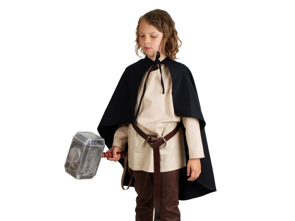 Krátký elegantní pláštík, který ocení každý malý dobrodruh a hrdina. Je vyrobený z pevné bavlněné látky a zavazuje se šňůrkou kolem krku. Perfektní doplněk dětského kostýmu na maškarní ples, tematický tábor nebo první LARP. Můžete si vybrat mezi hnědou a černou variantou, aby se vám barva hodila ke kostýmu. Chtěli byste si vytvořit autentický kostým hobita? Mrkněte se na naše tipy a složte si z nich vlastní hobití převlek. Hledáte něco jiného? Prohlédněte si celou nabídku dětských historických a fantasy kostýmů. Délka zad je cca 79 cm.