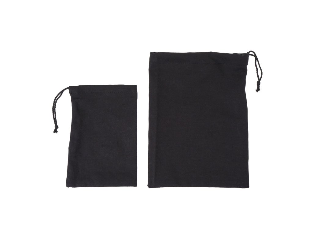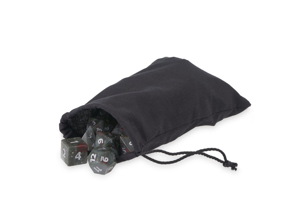 Jednoduchý černý plátěný pytlík z kvalitní bavlněné látky. Stahuje se šňůrkou, k mání je ve dvou velikostech - malý 10 x 15 cm a velký 15 x 20 cm. Ideální kupříkladu na kostky, komponenty k deskovkám či na jiné drobnosti. Více o použitém materiálu se dočtete zde: popis materiálů.
