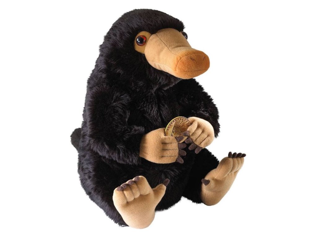 Větší plyšák Hrabáka (v originále Niffler) na motivy filmu Fantastická zvířata a kde je najít. Hrabák je černý chundelatý tvor s protáhlým čumákem, který žije v chodbičkách v zemi a miluje třpytivé věci. Může mít šest až osm mláďat v jednom vrhu, někdy tyto kouzelné bytůstky chovají skřeti.