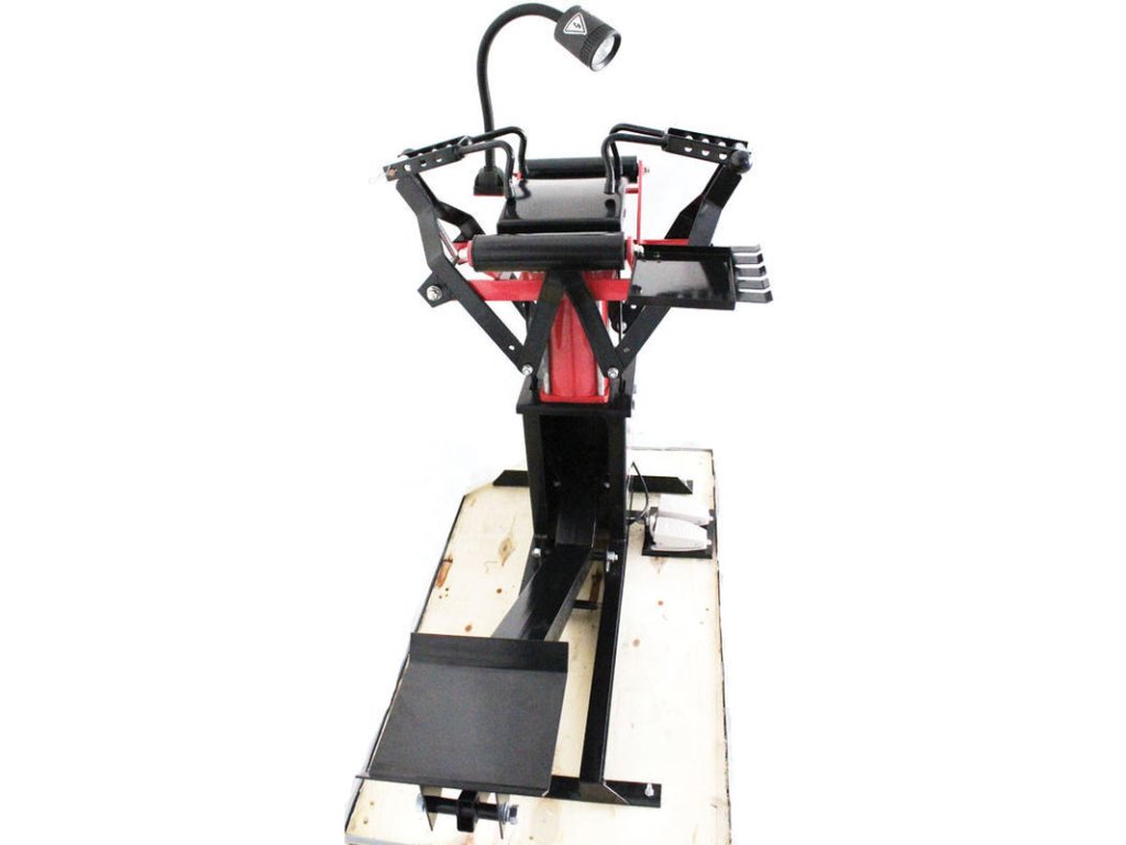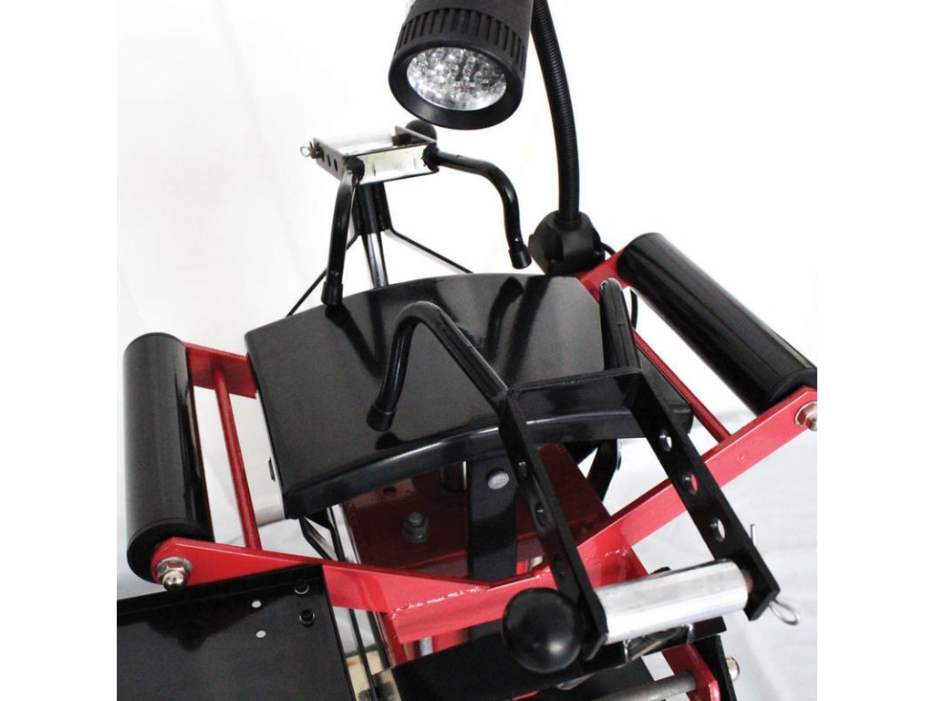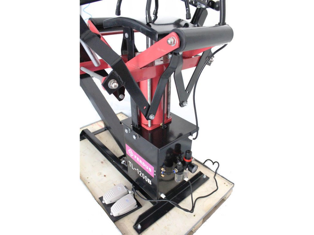 Zapojením zařízení do elektřiny se aktivuje funkce ovládacích nožních pedálů a nastavitelné svítilny pro osvětlení vnitřní části pneumatiky.