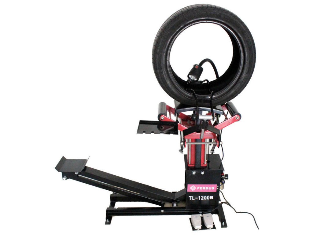 Pneumatika se musí umístit mezi dva válečky. V místě, kde má být provedena oprava pneumatiky se zachytí nastavitelnými roztahovacími rameny o patky pláště.