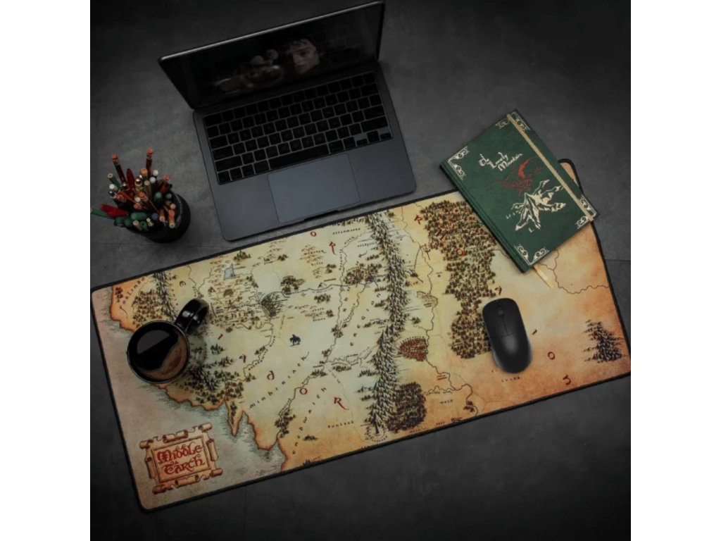 Podložka pod myš a klávesnici – Mapa Středozemě ti přinese atmosféru Tolkienova světa rovnou na tvůj stůl. Skvělá pro práci i hraní – poskytne dostatek prostoru jak pro klávesnici, tak pro svižný pohyb myši. Hladký povrch zajistí plynulý skluz myši, zatímco protiskluzová spodní strana udrží podložku pevně na místě i při největších bitvách. Ideální doplněk pro každého fanouška Pána prstenů, který chce mít Středozem vždy na očích.