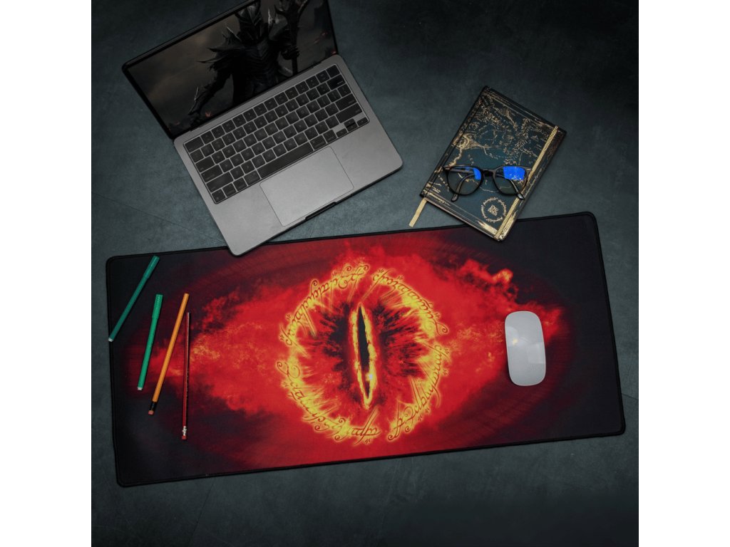 Podložka pod myš a klávesnici – Oko Saurona promění tvůj pracovní stůl ve výsostné území Temného pána. Dominantní rudé oko ze světa Pána prstenů ti pomůže udržet přehled a kontrolu – ať už při práci, nebo během epických bitev na obrazovce. Velkorysý rozměr 800 × 350 mm poskytuje dostatek místa pro myš i klávesnici. Díky hladkému textilnímu povrchu se myš pohybuje s dokonalou přesností, zatímco pogumovaná spodní strana zajišťuje stabilitu. Stylový a funkční doplněk pro každého fanouška Středozemě.