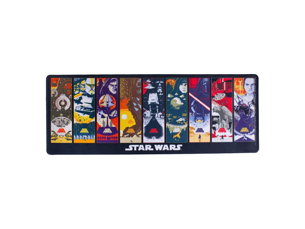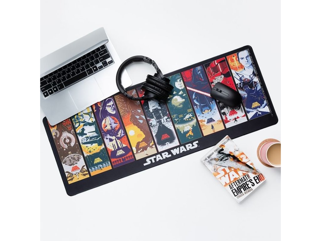 Kvalitní herní podložku pod myš a klávesnici zdobí grafika všech devíti filmů ze světa Star Wars - Hvězdných válek. Jedinečný doplněk pro váš herní i pracovní stůl!