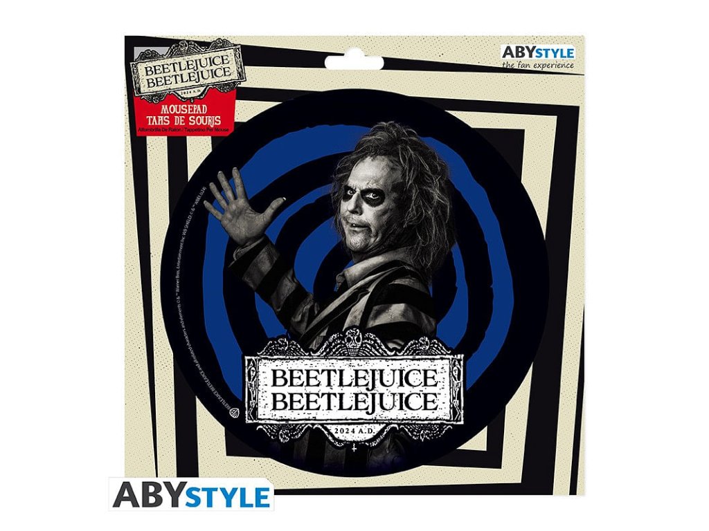Slavný bio-exorcista Beetlejuice je zpět v domě rodiny Deetzových a znovu přinese do jejich života chaos! Sleduj jeho řádění na této podložce pod myš s motivem Beetlejuice. Originální a praktický pomocník pro stůl každého hráče a milovníka kultovních filmů. Všichni, kdo se odváží pronést jeho jméno třikrát, by měli být připraveni na chaotickou jízdu napříč světem mrtvých i živých! Podložka je flexibilní a má protiskluzovou spodní část, je vhodná pro všechny typy myší. Rozměry: průměr 21,5 cm, tloušťka 3 mm.