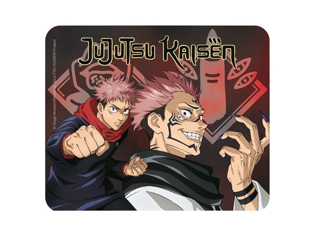 Podložka pod myš s grafikou oblíbené japonské mangy Jujutsu Kaisen má měkký povrch a její spodní část je opatřena protiskluzovým povrchem.