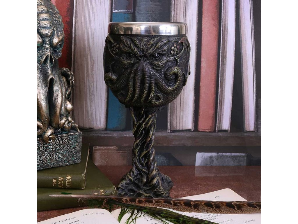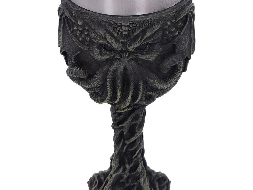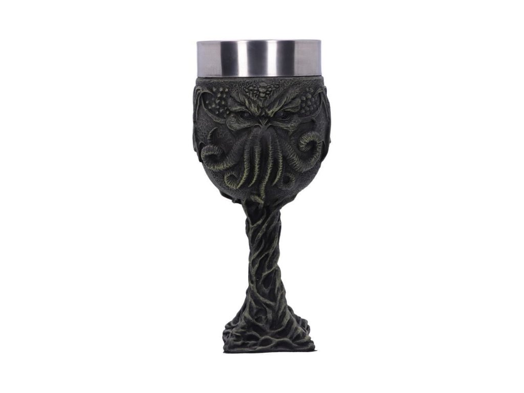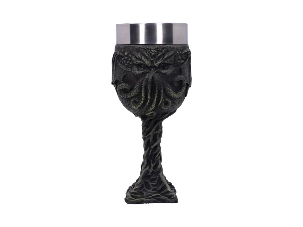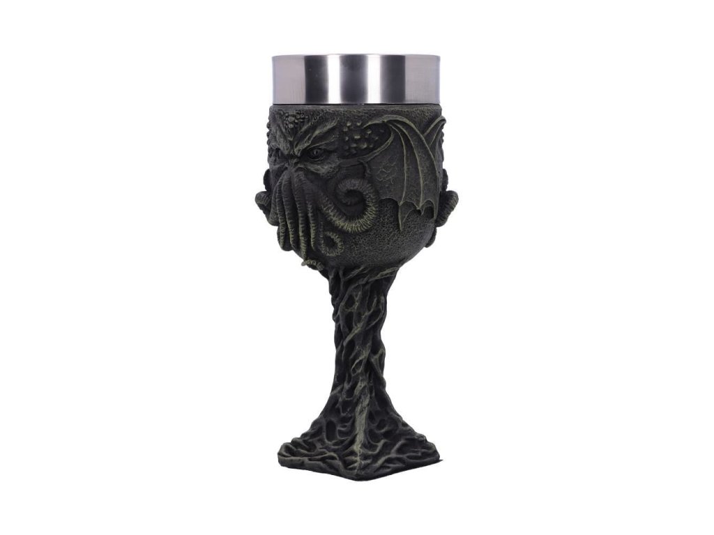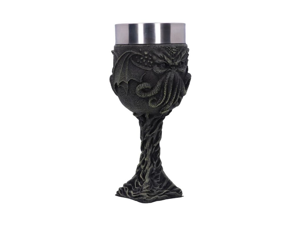Prastaré božstvo Cthulhu má žízeň, čím mu připijete z černého poháru šílenství? Stylový černý pohár se hodí pro fanoušky hororů Call of Cthulhu od H. P. Lovecrafta, ctitele gothic i jako rekvizity k divadlu, LARPu nebo hrám na hrdiny. Pohár má vyjmutelný nerezový vnitřek pro snadné čištění.