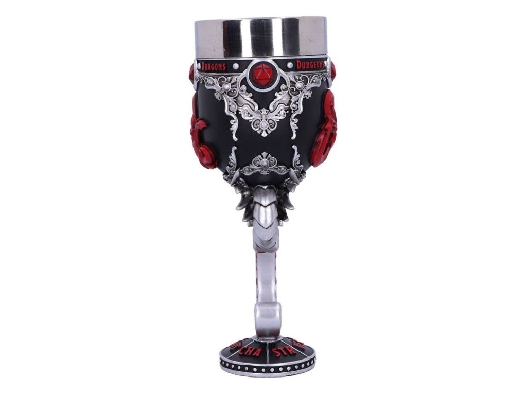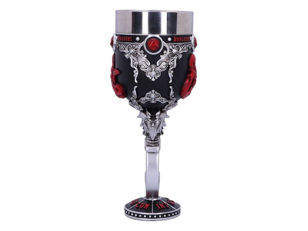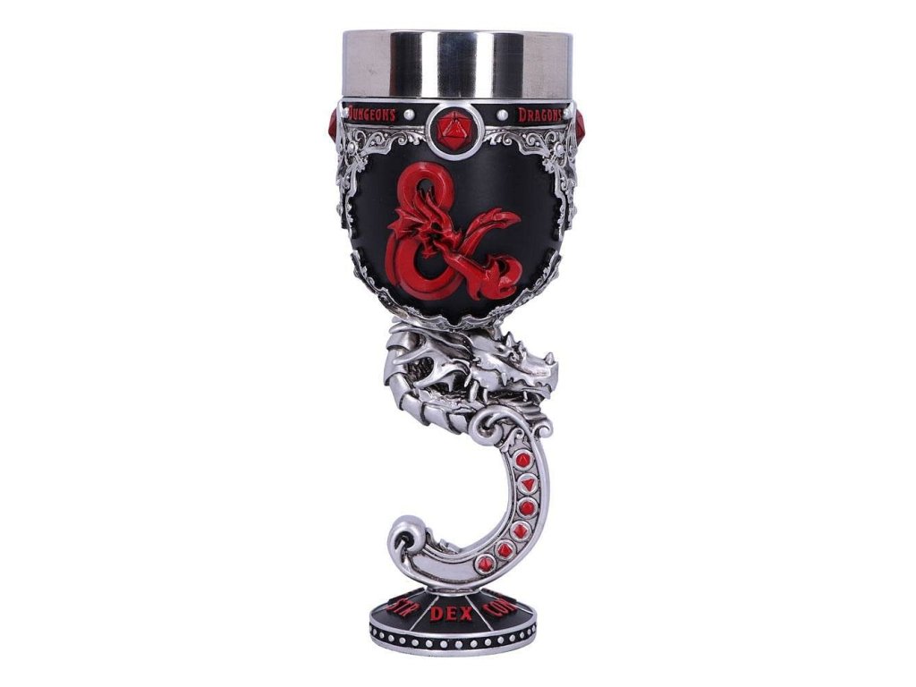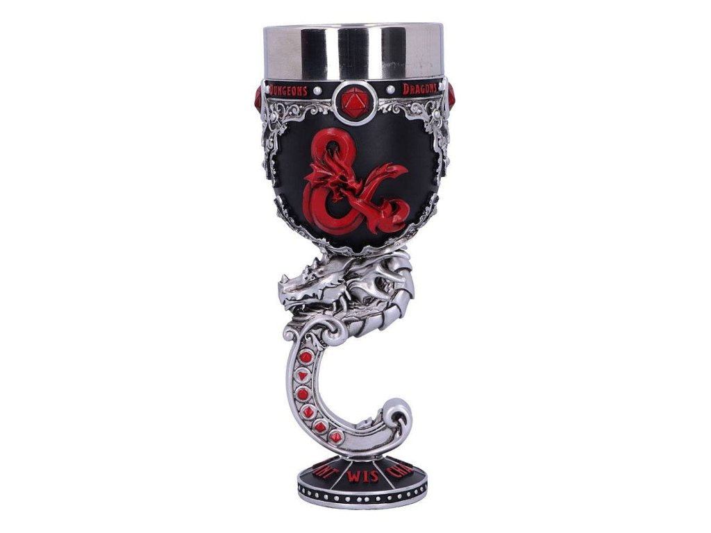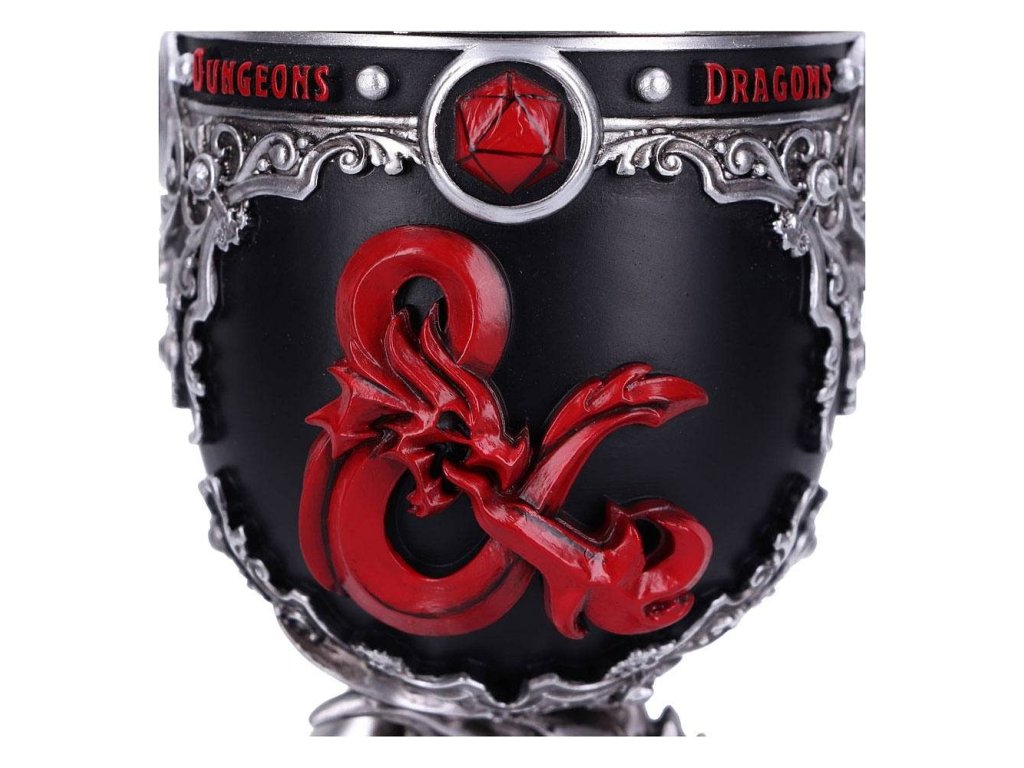 Ponořte se do dobrodružství ve světech Dungeons & Dragons a vychutnejte si vítězství z krásného poháru, který zdobí logo nejproslulejší hry na hrdiny na světě! Noha poháru je tvarovaná do podoby draka. Pohár pro hráče i Dungeon Mastery - dodá vašemu hraní tu správnou atmosféru! Uvnitř poháru se nachází vyjímatelná nerezová vložka pro snadnější údržbu, samotný pohár je z resinu (syntetická pryskyřice). Resinový pohár není vhodný do mikrovlnné trouby ani myčky nádobí!