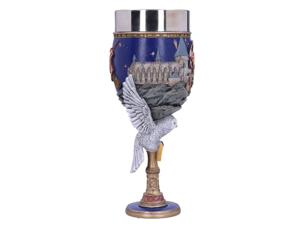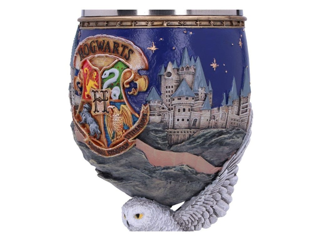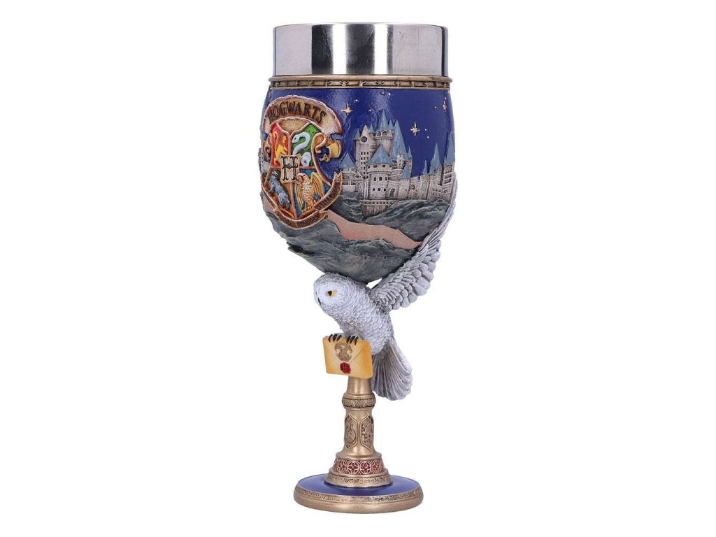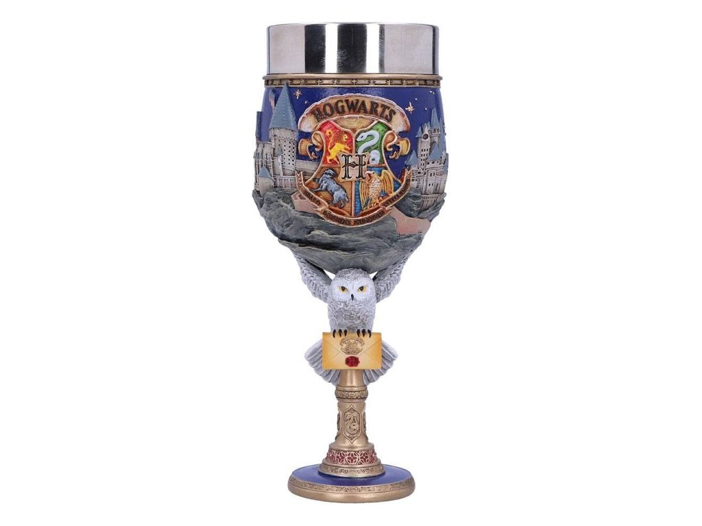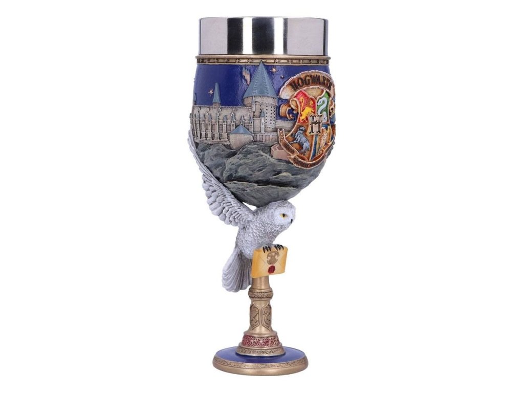 Krásný pohár ze školy čar a kouzel v Bradavicích zve fanoušky Harry Pottera k přípitku! Dopřejte si něco dobrého k pití, zatímco budete v ruce třímat stopku v podobě sovy Hedviky nesoucí dopis pro Harryho. Ručně malovaný pohár ze syntetické pryskyřice má vyjmutelný nerezový insert pro snadnou údržbu. Pohár není vhodný do mikrovlnné trouby ani do myčky nádobí.