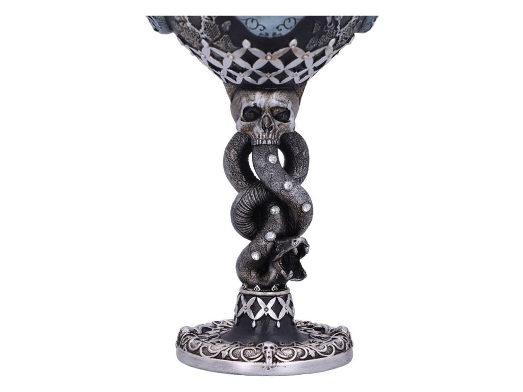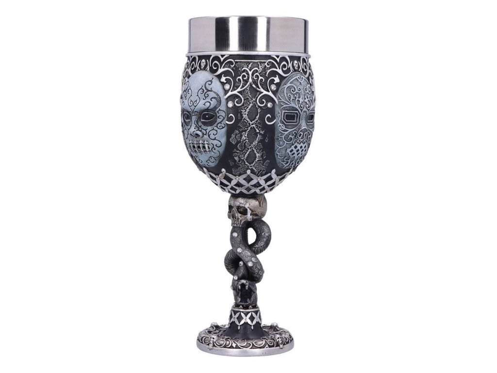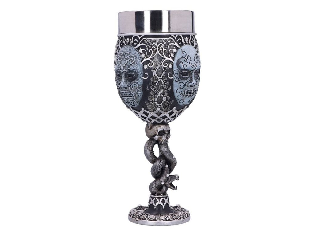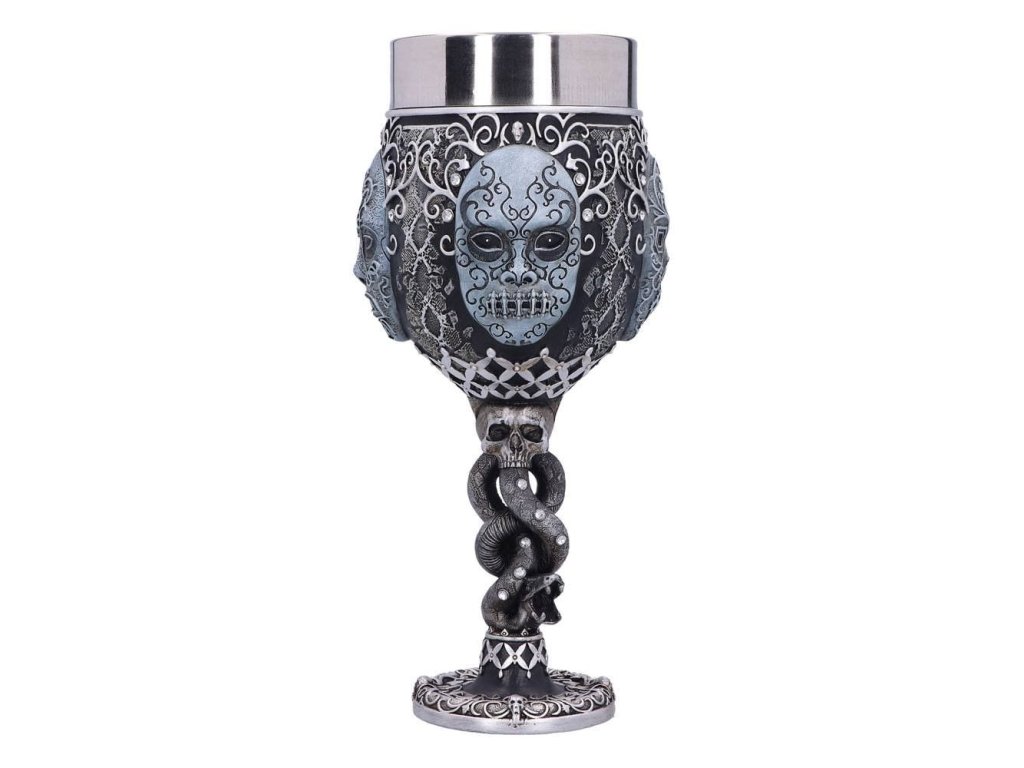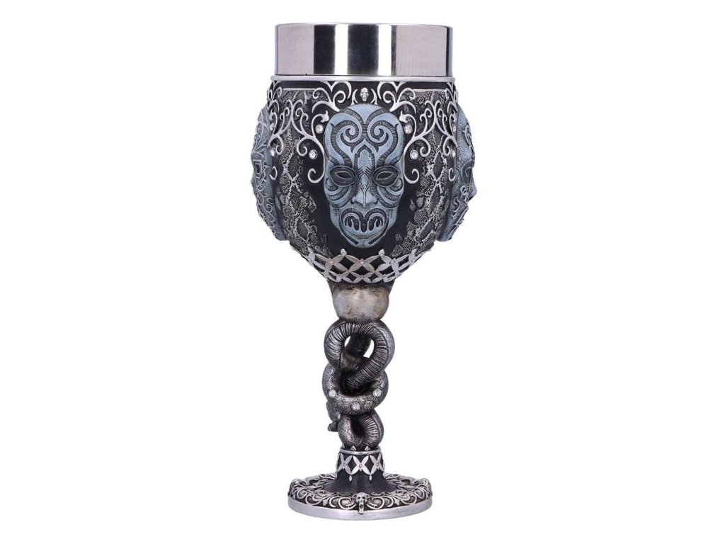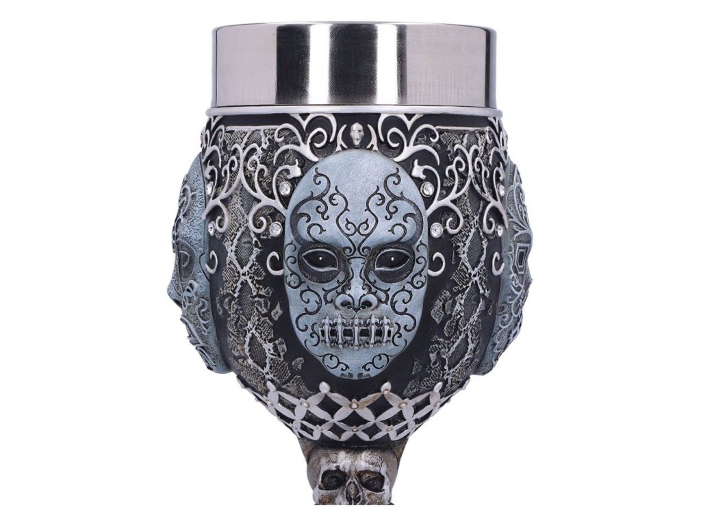 Připijte si pohárem pro zasvěcené - na úspěchy toho, jehož jméno se nesmí vyslovit! Pohár pro všechny Smrtijedy z Harry Pottera bude stylovým doplňkem domácnosti a hezkým dárkem. Ručně malovaný pohár ze syntetické pryskyřice má vyjmutelný nerezový insert pro snadnou údržbu. Pohár není vhodný do mikrovlnné trouby ani do myčky nádobí.